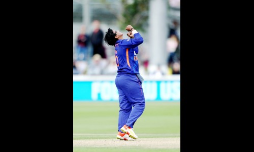 सीमर मेघना सिंगने एम्मा लँबला (12) बाद केल्यानंतर गोस्वामी व स्पिनर्स दीप्ती शर्मा व राजेश्वरी गायकवाड यांनी सातत्याने अचूक मारा करीत इंग्लंडच्या फलंदाजांना जखडून ठेवले. मात्र स्नेह राणा (6 षटकांत 45 धावा), पूजा वस्त्रकार (2 षटकांत 20) व मेघना यांच्यावर त्यांनी आक्रमण करीत भरपूर धावा वसूल केल्याने इंग्लंडला 220 च्या पुढे मजल मारता आली. डॅनी वॅट (50 चेंडूत 43), ऍलाईस डेव्हिडसन रिचर्ड्स (61 चेंडूत नाबाद 50) व सोफी इक्लेस्टोन (33 चेंडूत 31) यांनी उपयुक्त योगदान दिले तर चार्ली डीनने फटकेबाजी करीत 21 चेंडूत नाबाद 24 धावा फटकावत हातभार लावला.