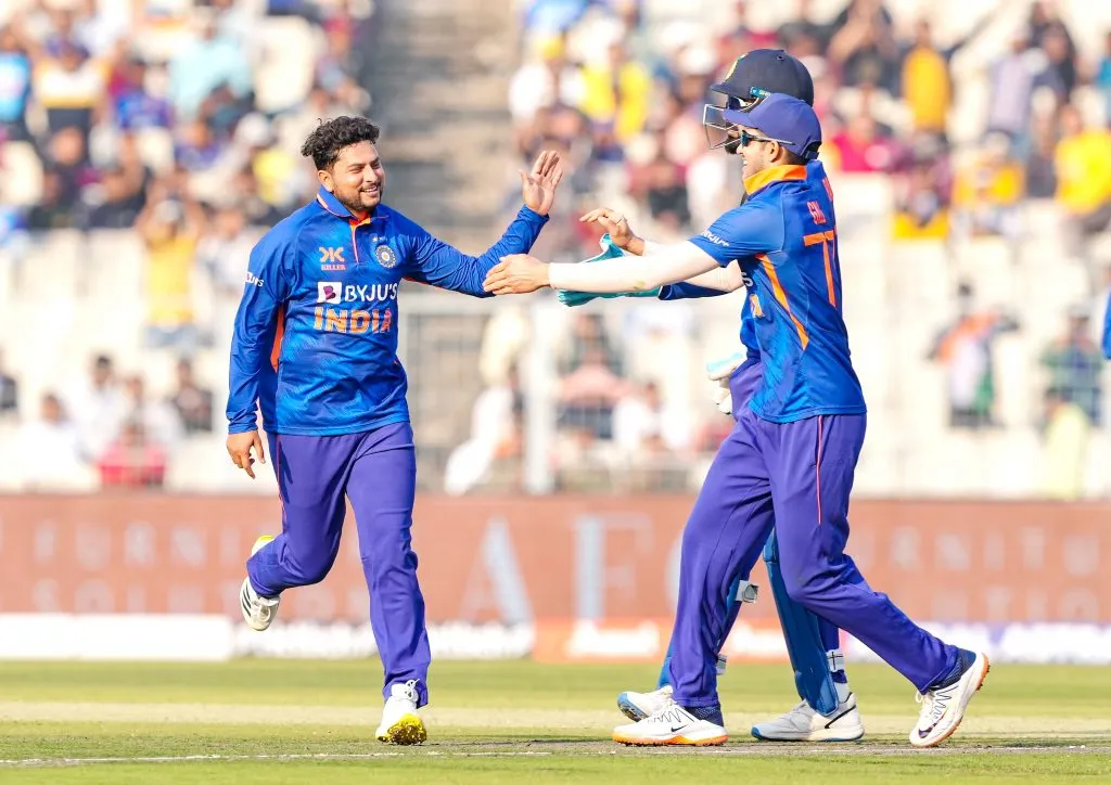 कुलदीपने यानंतर स्वतःच्या गोलंदाजीवर असालंकाला टिपले. त्याने 1 चौकारासह 15 धावा जमवल्या. हसरंगा आणि वेलालगे या जोडीने सातव्या गडय़ासाठी 26 धावांची भर घातली. उमरान मलिकने हसरंगाला पटेलकरवी झेलबाद केले. त्याने 17 चेंडूत 1 षटकार आणि 3 चौकारासह 21 धावा जमवल्या. उमरान मलिकने चमिका करुणारत्नेला पटेलकडे झेल देण्यास भाग पाडले. त्याने 25 चेंडूत 3 चौकारासह 17 धावा जमवल्या. वेलालगेने 34 चेंडूत 1 षटकार आणि 3 चौकारासह 32 धावा जमवल्या. लंकेला 200 धावांचा टप्पा ओलांडता आला. वेलालगे मोहमद सिराजच्या गोलंदाजीवर झेलबाद झाला. लंकेच्या डावातील 39 व्या षटकात मोहमद सिराजने दुसऱया आणि चौथ्या चेंडूवर लंकेचे दोन फलंदाज बाद केले. सिराजने कुमाराला खाते उघडण्यापूर्वीच त्रिफळाचित करून लंकेला 39.4 षटकात 215 धावावर रोखले. लंकेच्या डावामध्ये 3 षटकार आणि 26 चौकार नोंदवले गेले. भारतातर्फे मोहमद सिराज आणि कुलदीप यादव यांनी प्रत्येकी 3 तर उमरान मलिकने 2 तसेच अक्षर पटेलने एक गडी बाद केला. शमीला मात्र एकही गडी बाद करता आला नाही. भारताच्या मोहमद सिराजने पॉवर प्ले च्या कालावधीत नवा चेंडू उत्तमपणे हाताळला. पहिल्या 10 षटकाअखेर लंकेने 1 बाद 51 धावापर्यंत मजल मारली होती.
