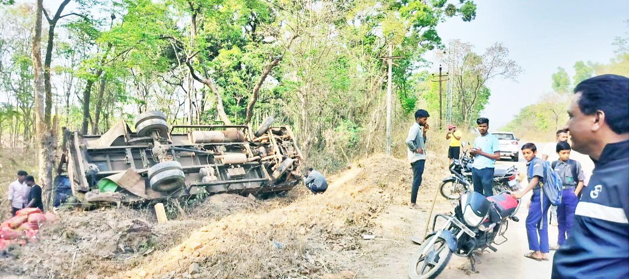 बेळगावहून गोव्याकडे भाजीपाला घेऊन जाणारा भरधाव टेंपो उलटून झालेल्या अपघातात क्लीनर जखमी झाल्याची घटना गुरुवारी पहाटे नायकोलनजीक राष्ट्रीय महामार्गावर घडली. सदर टेंपो बेळगावहून भाजीपाला घेऊन गोव्याकडे जाताना वाहनावरील ताबा सुटल्याने सदर टेंपो रस्ता सोडून गटारीतून बाहेर गेल्याने पलटी झाला. त्यामुळे या वाहनमध्ये असलेला क्लिनर किरकोळ जखमी झाला असून चालकही बालाबाल बचावला आहे. सदर टेंपो रस्त्यापासून जंगलात जवळजवळ 20 फुटावर जाऊन पलटी झाला. मात्र दैव बलवत्तर म्हणून चालक व क्लीनर दोघेही बचावले. परंतु सदर टेंपोचे मोठ्या प्रमाणात नुकसान झाले आहे. त्याचबरोबर टेंपोमध्ये असलेला भाजीपालाही सर्वत्र विखुरल्याने मोठे नुकसान झाले आहे.