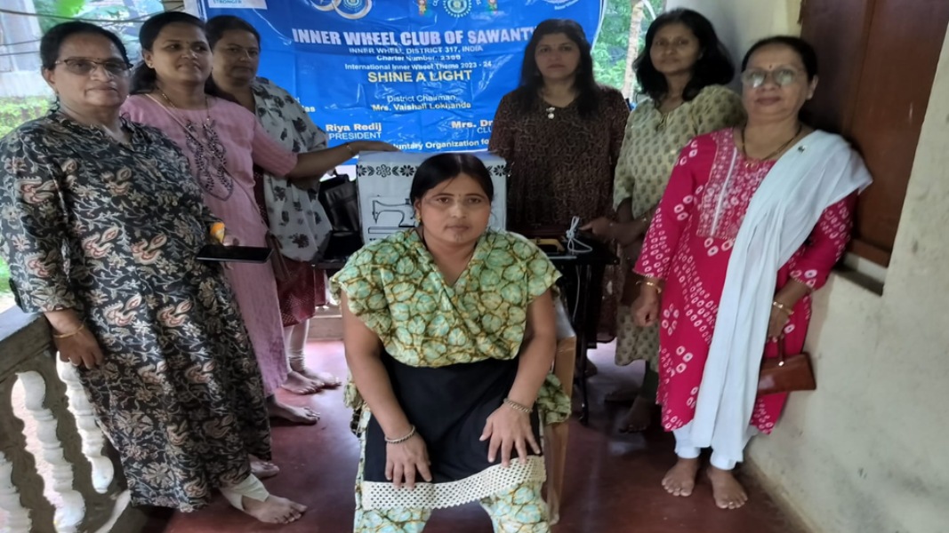 इनरव्हील क्लब सावंतवाडीला यावर्षी पन्नास वर्षे पूर्ण होत आहेत.व डिस्ट्रिकला शंभर वर्ष पूर्ण होत आहे. याचे औचित्य साधून माजगाव येथील रेणुका अर्जुन लमानी या महिलेला शिलाई मशीन देण्यात आली . ही महिला अपंग असून तिला आत्मनिर्भर बनवण्यासाठी स्वतःच्या पायावर उभे राहण्याचे धाडस येण्यासाठी शिलाई मशीन देण्यात आली आहे . इनरव्हील क्लब अध्यक्ष रिया रेडीज ,क्लब सेक्रेटरी डॉक्टर मीना जोशी ,ट्रेझरर श्रेया नाईक ,आय. एस . ओ डॉ. नेत्रा सावंत तसेच मीनल नाईक, सोनाली खोर्जुवेकर, हे सर्व सदस्य उपस्थित होते. रूपा मुद्राळे यांच्या माध्यमातून ही मशीन देण्यात आली .