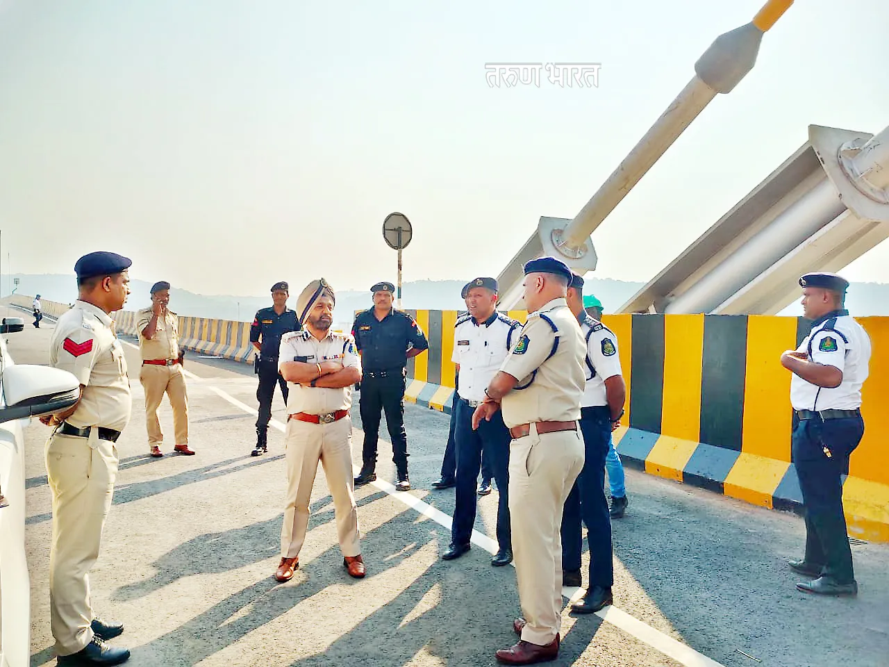 राज्याचे मुख्यमंत्री डॉ. प्रमोद सावंत व सार्वजनिक बांधकाम खात्याचे मंत्री निलेश कार्बाल यांनी गुरूवारी झुआरी नदीवरील नवीन पुलाची पाहणी केल्यानंतर व उद्घाटनाचा कार्यक्रम जाहीर केल्यानंतर काल शुक्रवारी राज्याचे पोलीस महासंचालक जसपाल सिंग यांनीही आपल्या अधिकाऱयांसमवेत या पुलावरील एकूण व्यवस्थेची पाहणी केली व आपल्या अधिकाऱयांना वाहतुकीसंबंधी मार्गदर्शन केले. पहिल्या टप्प्यातील चौपदरी पुलाचे उद्घाटन येत्या गुरूवारी 29 रोजी केंद्रीयमंत्री नितीन गडकरी यांच्या हस्ते होणार आहे. काल शुक्रवारी पोलीस महासंचालक जसपाल सिंग यांनी दक्षिण गोवा वाहुतक पोलीस उपअधीक्षक प्रबोध शिरवईकर, पोलीस निरीक्षक शैलेश नार्वेकर, दिलीप बिल्डकॉन कंपनीचे अधिकारी व इतरांसमवेत पाहणी केली. जसपाल सिंग यांनी यावेळी पोलीस व दिलीप बिल्डकॉन कंपनीच्या अधिकाऱयांना आवश्यक सुचनाही केल्या.