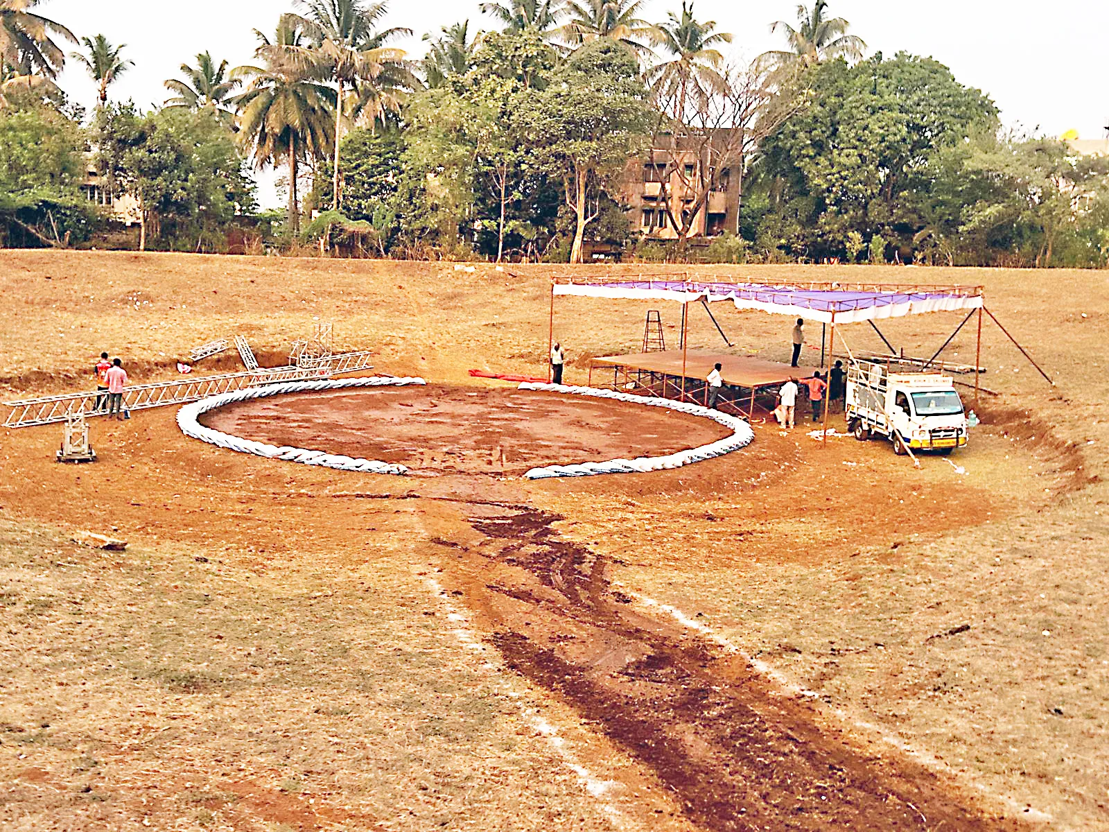 बेळगाव : बेळगाव जिल्हा कुस्तीगीर संघटना आयोजित आंतरराष्ट्रीय भव्य कुस्ती मैदान बुधवार दि. 12 रोजी आनंदवाडी आखाड्यात भरविण्यात येणार असून या कुस्ती मैदानाची सर्व तयारी झाली आहे. या मैदानात प्रथमच लॅटीन अमेरिकेचा मल्ल प्रँडीला बेळगावात येत आहे. तसेच इराणचे तीन मल्ल, भारतातील अव्वल पैलवानांशी लढणार आहेत. कर्नाटकाचा वाघ डबल कर्नाटक केसरी कार्तिक काटे हा सुद्धा पहिल्यांदाच इराणच्या मल्लांशी झुंज देणार आहे. या मैदानात बेळगाव केसरी किताब, बेळगाव मल्ल सम्राट या दोन किताबासाठी लढती होतील. तसेच कुस्तीचा जादुगार देवा थापा या मैदानाचे प्रमुख आकर्षण असून त्याला पाहण्याची उत्सुकता शौकिनांना आहे. यावेळी कुस्ती शौकिनांना आसन व्यवस्था आणि विद्युत रोषणाईची व्यवस्था केली आहे. सर्व निमंत्रित पाहुण्यांसाठी चोख व्यवस्था करण्यात आली आहे.