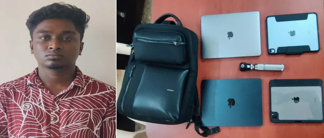 या प्रकरणी माळमारुती पोलीस ठाण्यात गुन्हा दाखल झाल्याने पोलीस चोरट्यांच्या मागावर होते. या प्रकरणांचा तपास करण्यासाठी माळमारुती पोलिसांचे एक विशेष पथक तामिळनाडूला गेले होते. त्याठिकाणी वरील आरोपीला ताब्यात घेण्यात आले. पोलीस ठाण्यात आणून त्याची कसून चौकशी केली असता त्याने विविध ठिकाणी महागड्या कारगाड्यांच्या काचा फोडून ऐवज पळविल्याची कबुली दिली. त्यानुसार त्याच्याकडून दोन लाख रुपये किमतीचे अॅपल कंपनीचे दोन लॅपटॉप, दीड लाख रुपये किमतीचे अॅपल कंपनीचे दोन आयपॅड आणि 50 हजार किमतीचा ऑटोस्कोप असा एकूण चार लाख रुपये किमतीचा ऐवज जप्त केला. गुन्हा करण्यासाठी त्याचे वडील जयशिलन यानेदेखील बेळगावात येऊन मदत केली आहे. त्यामुळे त्याच्या अटकेसाठी प्रयत्न चालविले आहेत. पोलीस निरीक्षक जे. एम. कालिमिर्ची, उपनिरीक्षक व्हन्नाप्पा तळवार, श्रीशैल हुळगेरी, उदय पाटील व त्यांच्या सहकाऱ्यांनी ही कारवाई केली आहे.