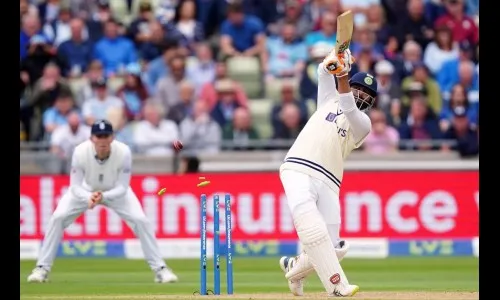 भारत पहिला डाव ः 84.5 षटकात सर्वबाद 416 (रविंद्र जडेजा 194 चेंडूत 13 चौकारांसह 104, पंत 111 चेंडूत 19 चौकार, 4 षटकारांसह 146, बुमराह 16 चेंडूत 4 चौकार, 2 षटकारांसह नाबाद 31, शमी 31 चेंडूत 16. अवांतर 40. अँडरसन 21.5 षटकात 60 धावात 5 बळी, मॅथ्यू पॉट्स 2-105, ब्रॉड, स्टोक्स, रुट प्रत्येकी 1 बळी).