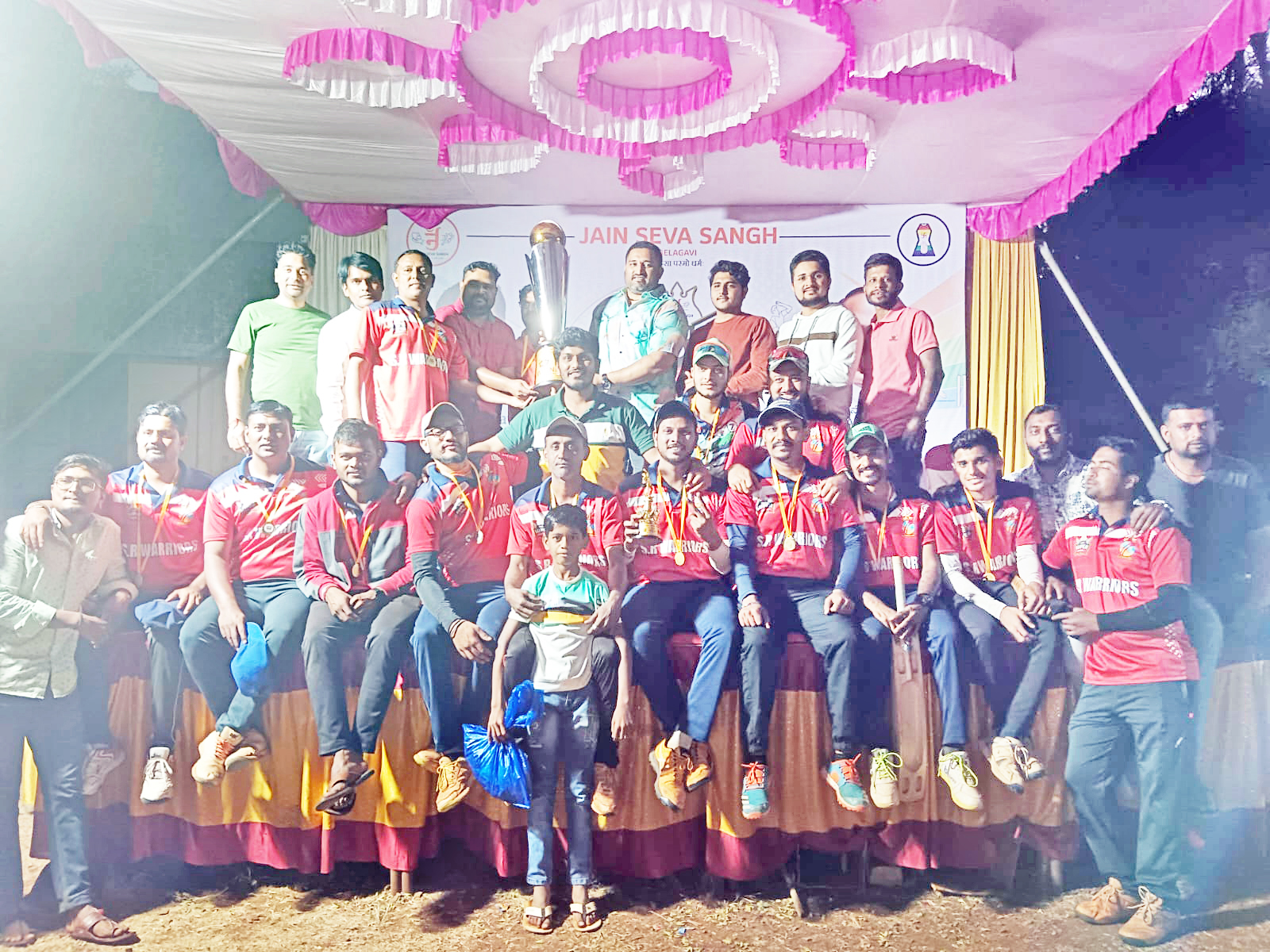 बेळगाव : जैन सेवा संघ आयोजित आनंत कुमार यांच्या स्मरणार्थ जैन मर्यादीत क्रिकेट स्पर्धेच्या अंतिम सामन्यात एस. आर. वॉरियर्स संघाने नादब्रह्म संघाचा 7 गड्यांनी पराभव करून जैन चषक पटकाविला. प्रवीण शेरी मालिकावीर, किरण बसरीकोळ सामनावीराने गौरविण्यात आले. युनियन जिमखाना मैदानावर जैन सेवा संघ आयोजित मर्यादीत टेनिस बॉल क्रिकेट स्पर्धेत पहिल्या उपांत्य फेरीच्या सामन्यात जैन इलेव्हन संघाने प्रथम फलंदाजी करताना 10 षटकात 9 गडी बाद 90 धावा केल्या. त्यात राहुल गौरवण्णाने 2 षटकार 1 चौकारासह 21, महावीर संगोळ्ळीने 17, अक्षित जैन व आदीराज यांनी प्रत्येकी 11 धावा केल्या. नादब्रह्मतर्फे प्रवीण उपाध्येने 9 धावात 3, प्रवीण शेरी, अक्षय पत्रावळी, आदित्य पत्रावळी यांनी प्रत्येकी 1 गडी बाद केला. प्रत्युत्तरादाखल खेळताना नादब्रह्म संघाने 8.1 षटकात 2 गडी बाद 93 धावा करून सामना 8 गड्यांनी जिंकला. त्यात प्रवीण उपाध्येने 4 षटकारांसह 33, प्रवीण शेरीने 5 चौकारांसह 32, आनंद करडीने 20 धावा केल्या. जैनतर्फे अक्षित व रोहित यांनी प्रत्येकी 1 गडी बाद केला. दुसऱ्या उपांत्य फेरीच्या सामन्यात एस. आर. वॉरियर्सने प्रथम फलंदाजी करताना 10 षटकात 4 गडी बाद 88 धावा केल्या. त्यात राज जैनने 2 षटकार, 4 चौकारांसह 37, किरण बसरीकोडीने 21, सागर उपाध्येने 10 धावा केल्या. मिट स्मॅशरतर्फे विशाल, भारत, स्वयम व अजय यांनी प्रत्येकी 1 गडी बाद केला. प्रत्युत्तरादाखल खेळताना मिट स्मॅशरने 10 षटकात 8 गडी बाद 87 धावा केल्या. त्यात विशाल गौरगुंडाने 2 षटकार, 4 चौकारांसह 38, वर्दन पाटीलने 2 चौकारांसह 16 धावा केल्या. एस. आर. वॉरियर्सच्या अमित कुडचीने 3, दक्षित व राज यांनी प्रत्येकी 1 गडी बाद केला.
