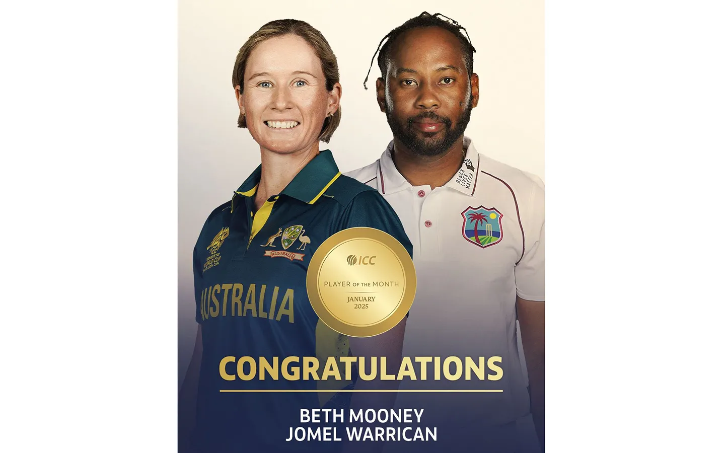 जानेवारी 2025 या महिन्यातील सर्वोत्तम खेळाडूंची घोषणा आयसीसीने मंगळवारी केली असून विंडीजचा स्पिनर जोमेल वॉरिकन व ऑस्ट्रेलियाची बेथ मुनी यांना सर्वोत्तम पुरुष व महिला क्रिकेटपटू म्हणून निवडले आहे.