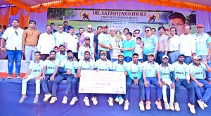 बेळगाव : के आर शेट्टीच्या भेदक गोलंदाजीच्या जोरावर आमदार राजू सेठ आर्ष इलेव्हन कारवार संघाचा 13 धावांनी पराभव करून डॉ. सतीश जारकीहोळी चषक पटकावित 3 लाख 50 हजाराचे बक्षीस मिळविले. नरेंद्र मांगोरे याला सामनावीर तर संतोष सुळगे-पाटील याला मालिकावीराने गौरविण्यात आले. सरदार्स मैदानावरती भातकांडे स्पोर्ट्स अकादमी व जिल्हा वाल्मिकी समाज यांच्या संयुक्त विद्यमाने आयोजित डॉ. सतीश जारकीहोळी चषक राज्यस्तरीय टेनिस बॉल क्रिकेट स्पर्धेच्या अंतिम सामन्यात आमदार राजू सेठ अर्ष इलेव्हन कारवार संघाने नाणेफेक जिंकून प्रथम क्षेत्ररक्षण स्वीकारले.