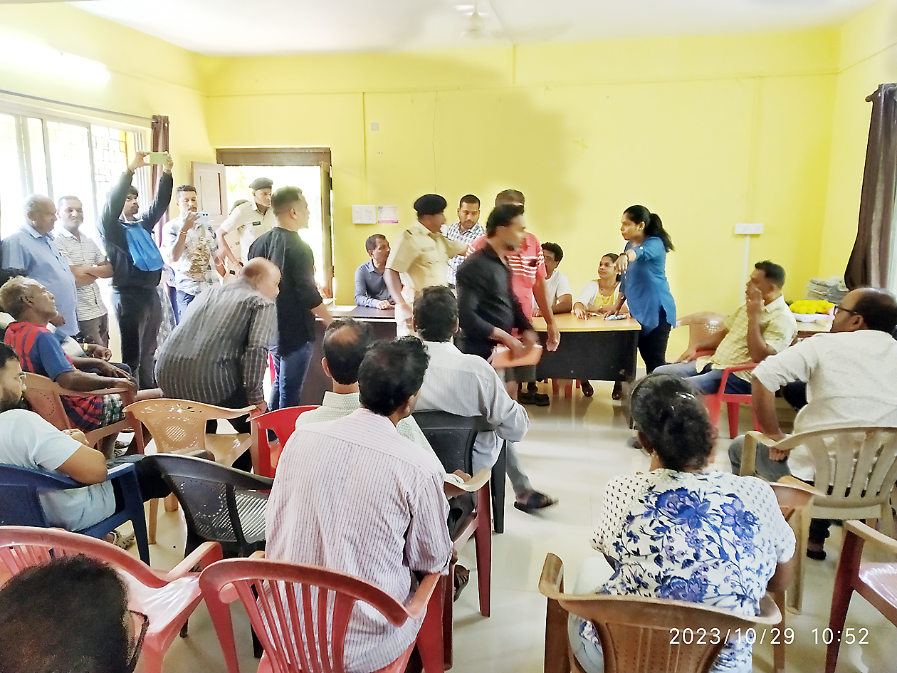 मागील ग्रामसभेत मेगा प्रकल्पासाठी रस्ता बांधण्यात आला होता, त्याची माहिती घेऊन संबंधित खात्याला दोन दिवसांत उत्तर देण्यात येईल, असे पंचायत मंडळातर्फे सांगण्यात आले होते. मात्र आजपर्यंत त्याची कार्यवाही का नाही झाली ? तसेच पंचायतीतर्फे तपासणीसुद्धा केली नाही याचा अर्थ काय? डिसेंबर 2021मध्ये ठराव घेण्यात आला होता की पंचायतीने दिलेला नाहरकत दाखला मागे घेणार असे सांगितले होते मात्र पण आजपर्यंत त्याची कार्यवाही का झाली नाही? असा प्रश्न ग्रामस्थांनी उपस्थित केला. यावर यावेळी पंचायत मंडळाने 2005 साली तत्कालीन पंचायत मंडळाकडून दोन घरांसाठी दाखला देण्यात आला होता, पाणी रस्ता, वीजपुरवठा त्यावेळी देण्यात आली होती, हे प्रथम जाणून घ्या आणि नंतरच बोला सरपंच म्हणाले. मात्र या विषयावरून ग्रामस्थ खुपच आक्रमक झाल्याने पंचायत मंडळ व ग्रामस्थांत खडाजंगी झाली. अखेर पोलीस संरक्षणात सरपंच थेट उठून मध्येच ग्रामसभा सोडून आपल्या केबिनमध्ये जाऊन बसावे लागले. यावेळी वातावरण बरेच तापले होते. यावेळी ग्रामस्थ संतप्त झाले. आरजी संजय वायंगणकर व इतर पंचायतीच्या दारावरच ठाण मांडून बसले. उपस्थित ग्रामस्थांचे सरपंच पांडुरंग खोर्जुवेकर यांनी स्वागत केले. मागील सभेचा अहवाल वाचन सचिव राजकुमार चोडणकरनी वाचून दाखविला.