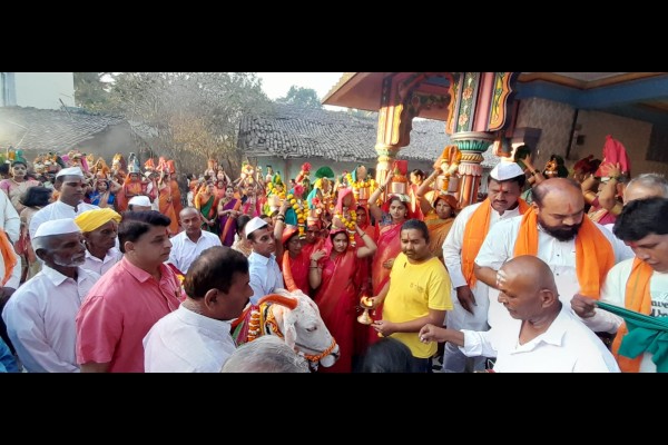 मंगळवारी या सोहळ्याचा मुख्य दिवस होता. सकाळी गावातील लक्ष्मी मंदिर येथे विधिवत पूजा-अर्चा करण्यात आली. त्यानंतर गो-मातेसह मिरवणूक काढण्यात आली. या मिरवणुकीत सुवासिनी डोक्यावर कलश घेऊन सहभागी झाल्या होत्या.
