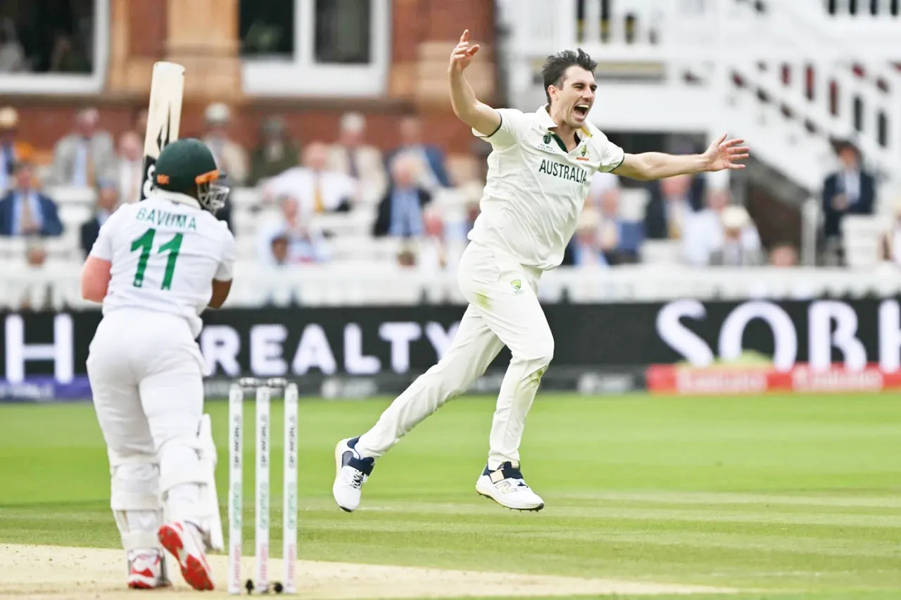 जगभरातील क्रिकेटप्रेमींच्या उत्सुकतेचे केंद्रबिंदू ठरलेल्या वर्ल्ड टेस्ट चॅम्पियनशिप फायनलमध्ये पहिल्याच दिवशी थरार शिगेला पोहोचला. लॉर्ड्सच्या ऐतिहासिक मैदानावर पहिल्या दिवशी तब्बल 14 बळी पडले, ज्यामुळे ही खेळपट्टी फलंदाजांसाठी ‘कर्दनकाळ‘ ठरली आहे. दुसऱ्या दिवशीही लॉर्ड्सवर गोलंदाजांचा वरचष्मा पहायला मिळला अन् आफ्रिकेचा पहिला डाव 57 षटकांत 138 धावांत आटोपला. पॅट कमिन्सच्या (28 धावांत 6 बळी) भेदक माऱ्यासमोर आफ्रिकन फलंदाजांनी नांगी टाकल्याचे पहायला मिळाले. दुसऱ्या दिवशी चहापानासाठी खेळ थांबला तेव्हा कांगारुंनी दुसऱ्या डावात खेळताना 12 षटकांत 2 गडी गमावत 32 धावा केल्या होत्या. लाबुशेन 16 तर स्मिथ 4 धावांवर खेळत होते. ऑस्ट्रेलियाचा संघ पहिल्या दिवशी 212 धावांवर सर्वबाद झाला. त्यानंतर दक्षिण आफ्रिकन संघ फलंदाजीसाठी आला. मात्र पहिल्याच दिवशी आफ्रिकेला सुरुवातीलाच मोठे धक्के बसले. मिचेल स्टार्कने एडन मार्करम आणि रायन रिकेल्टनला (16 धावा) देखील पॅव्हेलियनचा रस्ता दाखवला. तर, वियान मुल्डरला (6 धावा) कर्णधार पॅट कमिन्सने बाद केले. तसेच धोकादायक फलंदाज ट्रिस्टन स्टब्सही स्वस्तात बाद झाल्याने आफ्रिकेची पहिल्या दिवशी 4 बाद 43 अशी स्थिती झाली होती.
