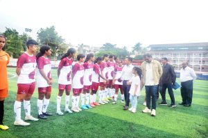 बेळगाव : कर्नाटक राज्य फुटबॉल संघटना व बेळगाव जिल्हा फुटबॉल संघटना यांच्या संयुक्त विद्यमाने राष्ट्रीय ज्युनिअर मुलींच्या फुटबॉल सामन्यातून कर्नाटकाने चंदीगडचा, उत्तरप्रदेशने जम्मूकाश्मिरचा, राजस्थानने त्रिपुराचा तर महाराष्ट्राने पुदुचेरीचा पराभव करुन विजयी सलामी दिली. बेळगाव येथील ट्रर्फ मैदानावर स्पर्धेच्या उद्घाटन प्रसंगी प्रमुख पाहुणे म्हणून बेळगाव पोलीस आयुक्त एडा मार्टिन मार्बलिंग, अमान सेठ, बेळगाव जिल्हा फुटबॉल संघटनेचे सचिव अमित पाटील, उपाध्यक्ष लेस्टर डिसोजा, प्रशांत देवदानम, अल्लाबक्ष बेपारी, आदी मान्यवरांच्या हस्ते खेळाडूंची ओळख करुन व चेंडू लाथाडून या स्पर्धेचे उद्घाटन करण्यात आले. या ज्युनियर फुटबॉल स्पर्धेत संपूर्ण भारतातून नामवंत 18 संघांनी भाग घेतला आहे.सकाळी खेळविण्यात आलेल्या पहिल्या सामन्यात कर्नाटक संघाने चंदीगड संघाचा 11-0 असा पराभव केला. या सामन्यात कर्नाटकाच्या मैत्रेई पलासमुद्रमने सलग 5 गोल करुन स्पर्धेची पहिली हॅट्ट्रीक नोंदविली.