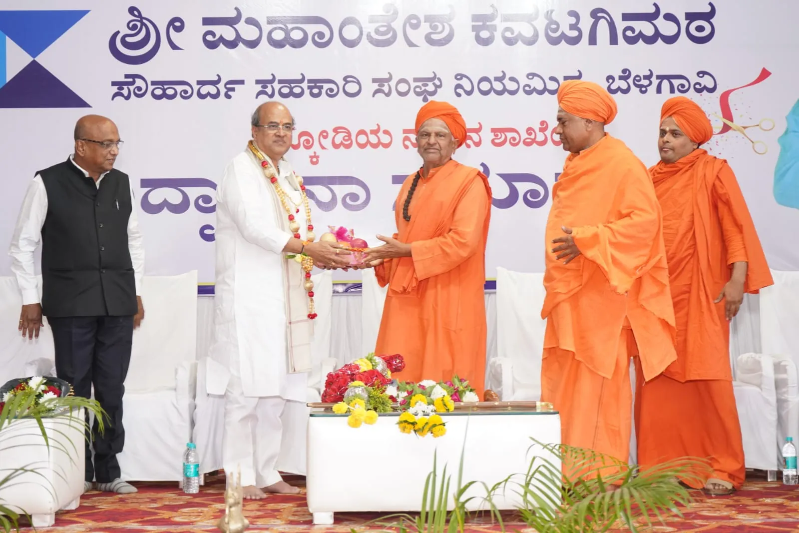 चिकोडीच्या चरमुर्ती मठाचे संपादना स्वामी यांनी माणसाचे जीवन हे आदर्शवत असावे. प्रारंभी विद्या व नंतर धन कमवावे पण ते सत्कार्यासाठी वापरताही यावे. कवटगीमठ यांनी या भागाच्या सर्वांगीण विकासात मोठे योगदान दिले आहे. सत्ता असताना कुणीही काम करू शकतो, पण सत्ता नसतानाही त्यांचे समाजकार्य निरंतर सुरू आहे. शेतकरी, महिला व पीडितांच्या आर्थिक सबलीकरणासाठी सहकारी संस्थांचे पात्र अत्यंत महत्त्वाचे आहे. संस्थांनी अविकसितांचे अश्रू पुसण्याचे काम करावे तर कर्जदारांनी घेतलेले कर्ज वेळीच भरून संस्थांच्या विकासाला हातभार लावावा, असे आवाहन केले.