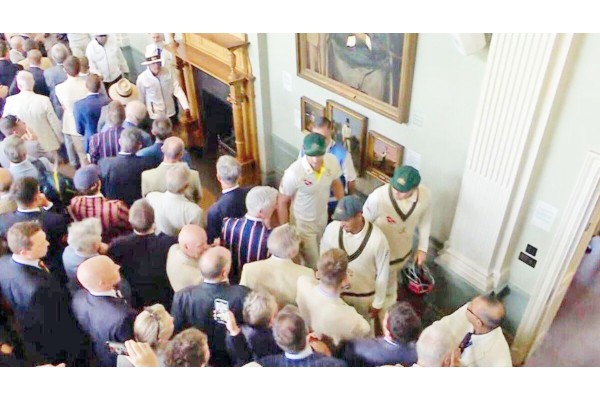 दरम्यान, लंचच्या वेळी ऑस्ट्रेलियन टीम लॉर्ड्स स्टेडियमच्या लाँग रुममधून ड्रेसिंग रूमच्या दिशेने जात होती, त्याचवेळी तेथे उपस्थित एमसीसी सदस्याने काही तरी टिपणी केली. याला प्रत्युत्तर देताना उस्मान ख्वाजाने त्या सदस्याशी वाद घालण्यास सुरुवात केली. यानंतर तेथे उपस्थित सुरक्षा रक्षकांना हस्तक्षेप करावा लागला. दरम्यान, ख्वाजाच्या मागे येणारा डेव्हिड वॉर्नरही एमसीसीच्या त्या सदस्याला उत्तर देताना दिसला.