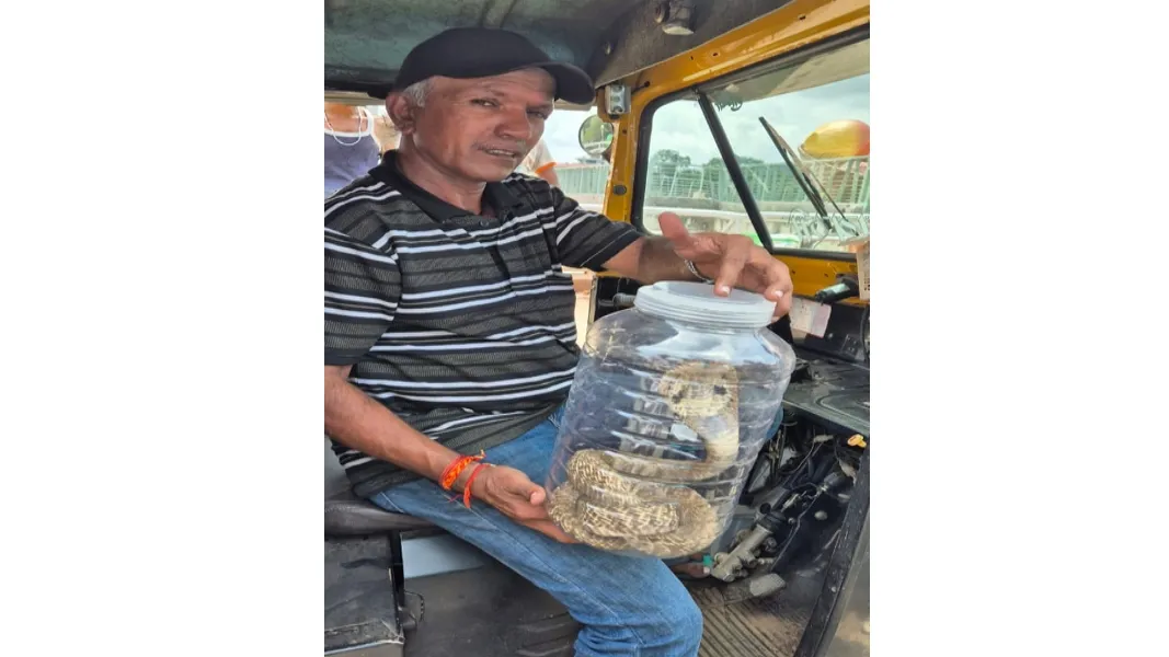 सर्पमित्र राजन निब्रे यांनी कोब्राला नैसर्गिक अधिवासात केले मुक्त