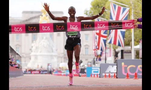रविवारी येथे झालेल्या लंडन मॅरेथॉनमध्ये पुरुष विभागात केनियाचा धावपटू ऍमोस किपरुटोने तसेच महिलांच्या विभागात इथोपियाची धावपटू येलिमेझर येहुलॉ यांनी विजेतेपद पटकाविले.