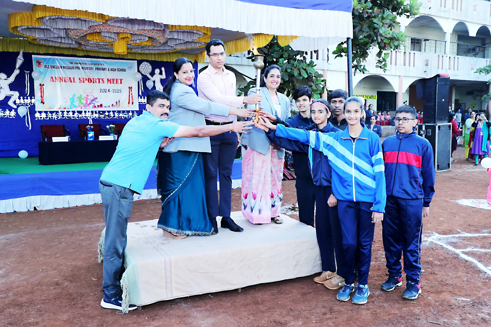 बेळगाव : भाग्यनगर येथील येथील केएलएस शाळेच्या वार्षिक क्रीडा स्पर्धेला मोठ्या उत्साहात झाल्या. स्पर्धेच्या उद्घाटनाला प्रमुख पाहुणे म्हणून प्रसिद्ध फिजिओथेरपीस्ट डॉ. अमित पिंगट, मुख्याध्यापिका नंदिनी मुतालिक-देसाई, सारिका नाईक, गोगटे महाविद्यालयाचे क्रीडा निर्देशक मंजुनाथ गौडा, नर्मदा अंतलमरद आदी व्यासपीठावर उपस्थित होते. प्रारंभी पाहुण्यांचे हस्ते क्रीडाध्वजारोहण करण्यात आले. ग्रीन, रेड, यलो व ब्युल्यू गटाच्या संघांनी पथसंचलन करुन पाहुण्यांना मानवंदना दिली. विद्यार्थ्यांनी वैष्णवी वादीराज, समर्थ कुलकर्णी, अनुप हनगोजी व कावेरी पारिश्वाड यांनी क्रीडाज्योत मैदानाभोवती फिरून पाहुण्यांच्याकडे सुपूर्द केली.