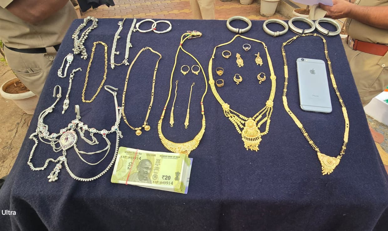 या गून्ह्याचा तपास सहाय्यक पोलिस निरिक्षक महेश घेरङीकर यांनी केला असून त्यांनी सायबर पोलिसांच्या मदतीने चोरीस गेलेला मोबाईल फोनची तांत्रिक तपासणी करून या गून्ह्यातील आरोपी विनायक गजानन कूंभार वय 27 रा. टाकवङे वेस इचलकरंजी, ता, हातकणंगले याला ताब्यात घेवून त्याच्याकङे मोबाईल फोन बाबत चोरीबाबत तपास केला असता त्यांने आपला मित्र किरण सूभाष पाटील वय 33 रा. राणाप्रताप चौक टाकवङे वेस इचलकरंजी यांच्या मदतीने केली असल्याचे कबूल केल्याने त्यानां अटक करून 9 दिवसाची पोलिस कोठङी देवून त्यांच्याकङून कसून चौकशी करून दोन लाख 20 हजार किंमतीचे 40 ग्रेॅम वजनाचे सोन्याचा राणी हार एक नग, एक लाख 37 हजार 500 रूपये किंमतीचे 15 ग्रेम वजनाचे काळे मनी असलेले मंगळसूत्र, 82 हजार 500 किंमतीचे 15 ग्रॅम वजनाचे सोन्याचे नेकलेस,सहा हजार किंमतीचे 15 भार वजणाचे लहाण मूलांचे चांदीचे दागिने, 62 हजार किंमतीचे 11 ग्रॅम वजणाचे सोन्याचे लहान मंगळसूत्र, 53 हजार रूपये किंमतीचे 8 . 8 ग्रॅम वजणाच्या सोन्याच्या तीन अंगठ्या असा एकूण 6 लाख 78 हजार 750 रूपये किंमतीचा मूद्देमाल हस्तगत केला आहे, यातील आरोपी विनायक कूंभार हा अट्टल घरफोङी करणारा गून्हेगार असून त्याच्यावर 20 पेक्षा जास्त गून्हे दाखल आहेत.