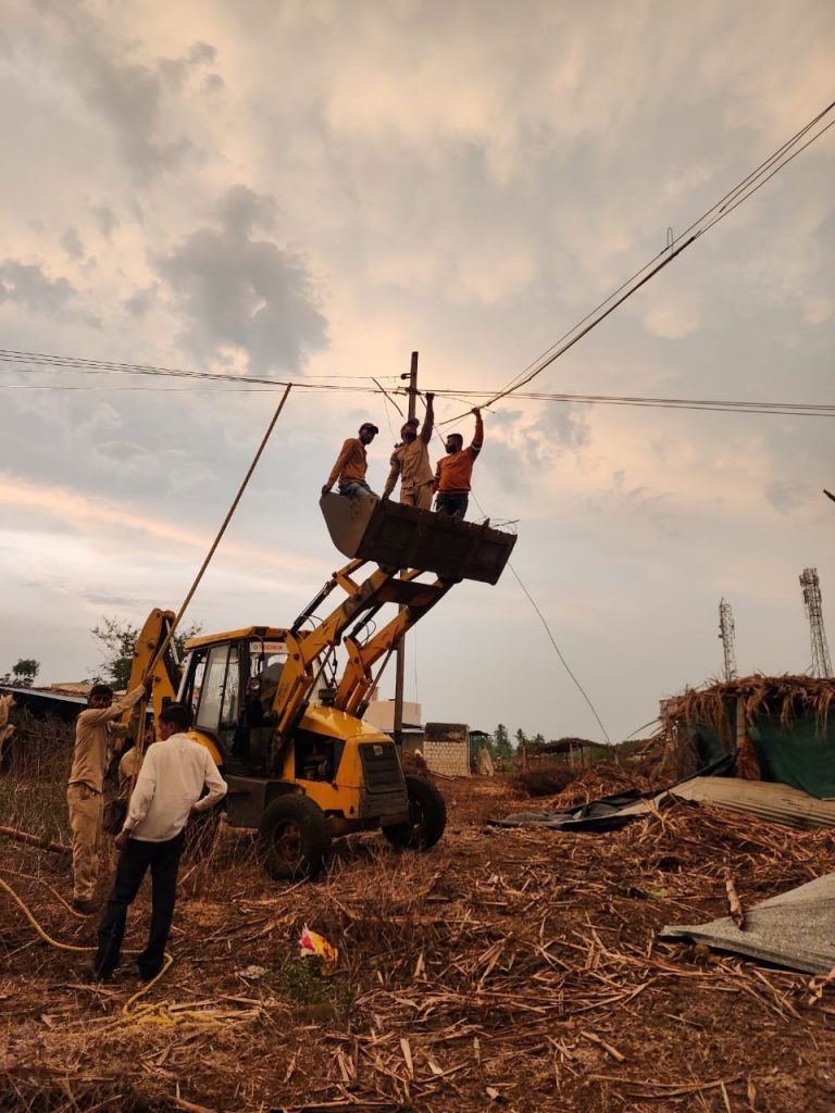 महावितरणच्या कर्मचाऱ्यांनी रात्री १२ पर्यंत तारा मध्ये अडकलेले पत्रे, वाऱ्यामुळे तारावर पडलेली झाडे, फांद्या तोडून वीज पुरवठा सुरळीत केला.