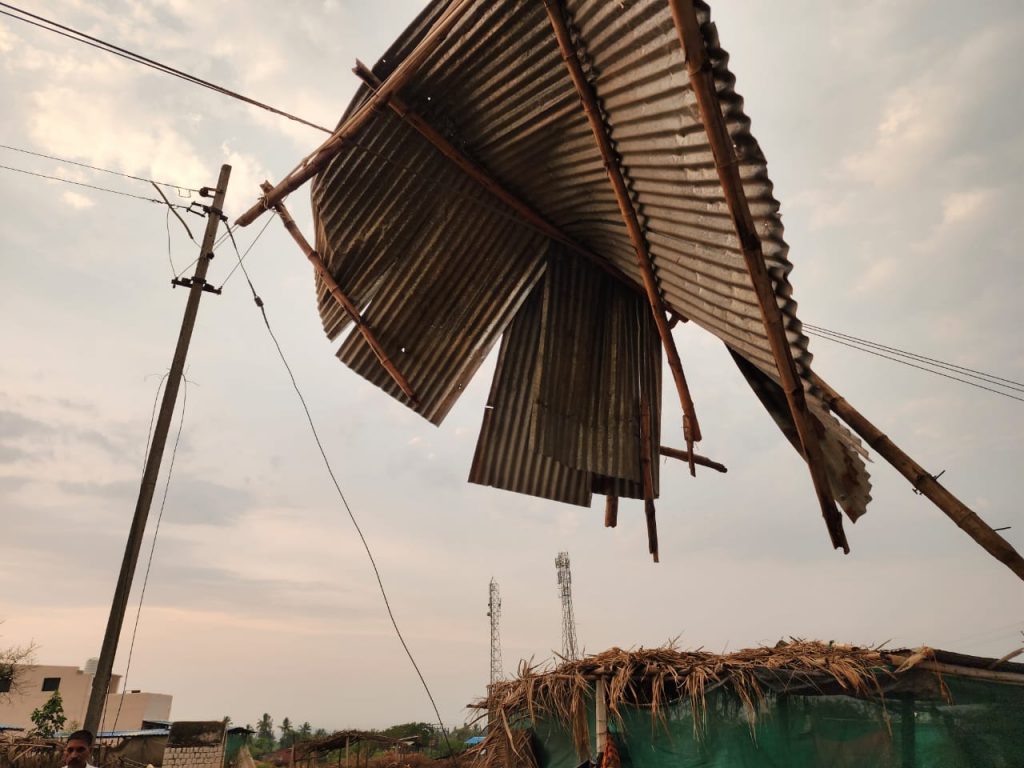खोची परिसरात पाऊस कमी व वारा मोठ्या प्रमाणात झाला.त्यामुळे अनेक ठिकाणी छपरावरील पत्रे उडून गेले.