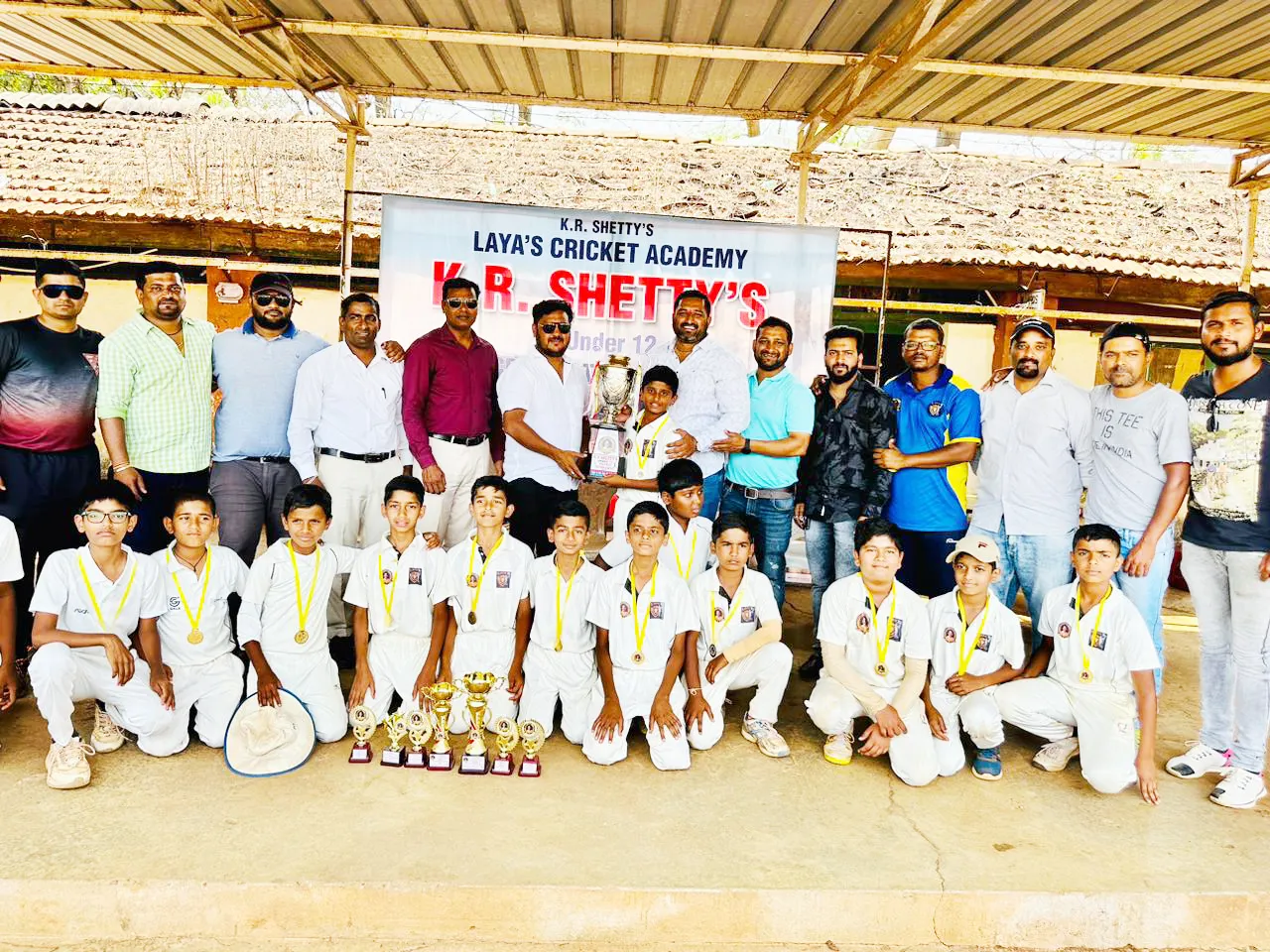 बेळगाव ; केआर शेट्टी स्पोर्ट्स फौंडेशन आयोजित केआर शेट्टी चषक 12 वर्षाखालील आंतर क्लब क्रिकेट स्पर्धेच्या अंतिम सामन्यात अतितटीच्या लढतीत केआर शेट्टी लायाज संघाने युनियन जिमखाना संघाचा केवळ 2 धावांनी पराभव करून दुसरा केआर शेट्टी चषक पटकाविला. स्वयं खोतला सामनावीर तर फरान शेखला मालिकावीर पुरस्काराने गौरविण्यात आले. य् ाgनियन जिमखाना मैदानावर खेळविण्यात आलेल्या अंतिम सामन्यात केआर शेट्टी लायाज संघाने प्रथम फलंदाजी करताना 25 षटकात 9 गडीबाद 134 धावा केल्या. तर स्वयं खोतने 2 षटकार 5 चौकारांसह 40, अखिलेशने 5 चौकारांसह 30 धावा केल्या. युनियन जिमखानातर्फे फरान शेखने 20 धावात 4, शाहरुख दिलवालेने 17 धावात 2, हमजा सराफने 21 धावात 2 गडीबाद केले. प्रत्युत्तरादाखल खेळताना युनियन जिमखाना संघाने 25 षटकात 9 गडीबाद 132 धावा केल्या. केवळ 2 धावांनी सामना गमवावा लागला. त्यात फरहान शेखने 4 चौकारांसह 26 धावा केल्या. केआर शेट्टी लायाजतर्फे स्वयं खोतने 22 धावात 2, हर्षित, कांदू, वरदराज, विनायक यांनी प्रत्येकी 1 गडी बाद केला. सामन्यानंतर प्रमुख पाहुणे पुरस्कर्ते प्रणय शेट्टी, रोहित पोरवाल, चंदन कुंदरनाड, ताहीर सराफ, पुनीत शेट्टी, वसिम धामणेकर, प्रसन्ना शेट्टी, प्रशांत लायंदर, राहुल मगदूम, सलमान गोकाकर, अॅड. शिवाजी पाटील, राघवेंद्र कडलगी आदी मान्यवरांच्या हस्ते विजेते केआर शेट्टी लायाज संघाला व उपविजेत्या युनियन जिमखाना संघाला चषक व दोन्ही संघाच्या खेळाडूंना पदके देऊन गौरविण्यात आले. अंतिम सामन्यातील सामनावीर स्वयं खोत, उत्कृष्ट फलंदाज आरुश देसूरकर, उत्कृष्ट गोलंदाज कांदू पाटील, स्पर्धेतील इंपॅक्ट खेळाडू स्वयम खोत, उत्कृष्ट क्षेत्ररक्षक महम्मद हमजा तर मालिकावीर म्हणून फरहान शेख यांना चषक व पदके देऊन गौरविण्यात आले.