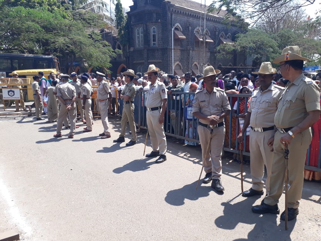 जिल्हाधिकारी कार्यालयासमोर पोलिसांचा मोठा फौजफाटा निदर्शनास आल्याने अनेकांकडून उत्सुकतेने पाहिले जात होते. मार्केट पोलिसांकडून धारेवर धरण्यात आल्याने केएसआरपी जवान तातडीने दाखल होऊन सेवा बजावत असल्याचे चित्र मंगळवारी पहावयास मिळाले.