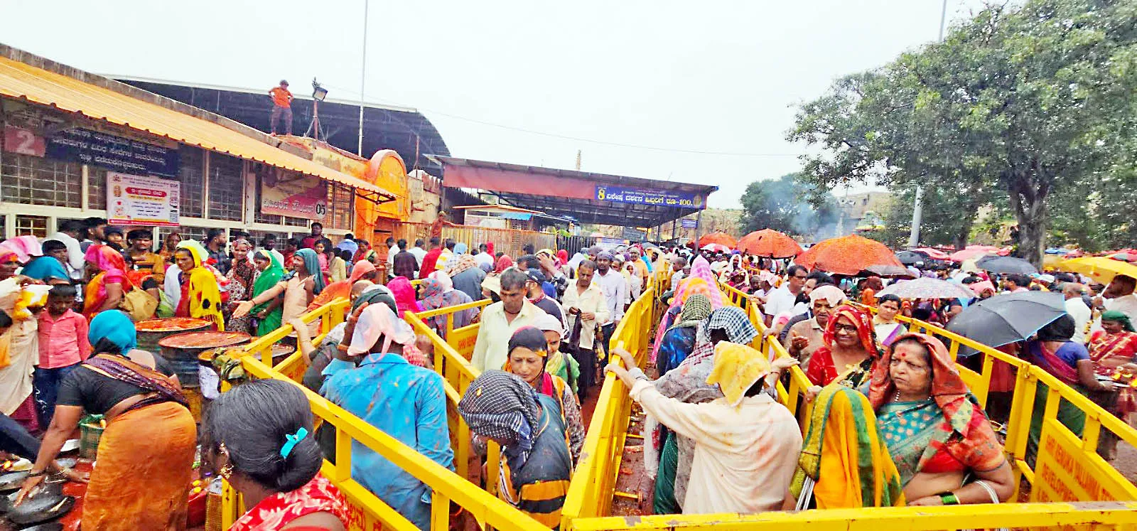 देवीच्या मंदिरापासून 3 कि. मी. वर डोंगराच्या चढतीवर तिन्ही मार्गांवरून येणाऱ्या कार, टमटम रिक्षा, टॅक्टर, मोटारसायकल व कर्नाटक, महाराष्ट्राच्या 200 हून अधिक बसेसचा ताफा डोंगरावर आल्याने डेंगरावर वाहनांच्या लांबच लांब रांगा लागल्या होत्या. त्यामुळे काही काळ वाहतूक विस्कळीत झाली होती. दूरवरच बसेस व इतर वाहने थांबविल्याने भाविक पायी जात होते. पोलीस व वाहनचालकांमध्ये शाब्दिक चकमकी ठिकठिकाणी होत होत्या.