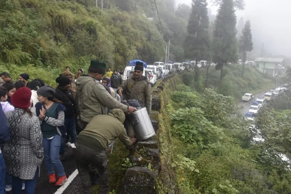 भारतीय लष्कराच्या त्रिशक्ती कॉर्प्सच्या अधिकाऱ्यांनी सांगितले की, भूस्खलनामुळे भारत-बांग्लादेश सीमा आणि गंगटोकला सिलीगुडीमार्गे जोडणारा राष्ट्रीय महामार्ग खराब झाला आहे. रस्त्यावर मोठय़ा प्रमाणात दरड आहे. जदलगतीने या मार्गावरील दरड हटविण्याचे काम प्रशासनाकडून सुरू आहे. हा महामार्ग सिक्कीम आणि पश्चिम बंगालला जोडतो. त्यामुळे या मार्गावरुन जाणारे जवळपास 550 पर्यटक अडकून पडले आहेत. स्ट्रायकिंग लायन डिव्हिजनच्या तुकडय़ांकडून त्यांना अन्न, पाणी पुरविले जात आहे. तसेच ज्यांची प्रकृती ठीक नाही, अशा लोकांना औषधे पोहोचवण्यात येत आहेत.