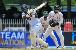 लंका प. डाव 48.4 षटकात सर्वबाद 166, पाक प. डाव 134 षटकात 5 बाद 576 डाव घोषित (अब्दुल्ला शफीक 201, शान मसूद 51, आझम 39, सौद शकील 57, सलमान नाबाद 132, रिझवान नाबाद 50, अवांतर 26, असिता फर्नांडो 3-133, प्रभात जयसुर्या 2-194). लंका दु. डाव 67.4 षटकात सर्वबाद 188 (अँजेलो मॅथ्यूज नाबाद 63, करुणारत्ने 41, मधुष्का 33, कुशल मेंडीस 14, डिसिल्वा 10, रमेश मेंडीस 16, अवांतर 5, नौमन अली 7-70, नसीम शहा 3-44).