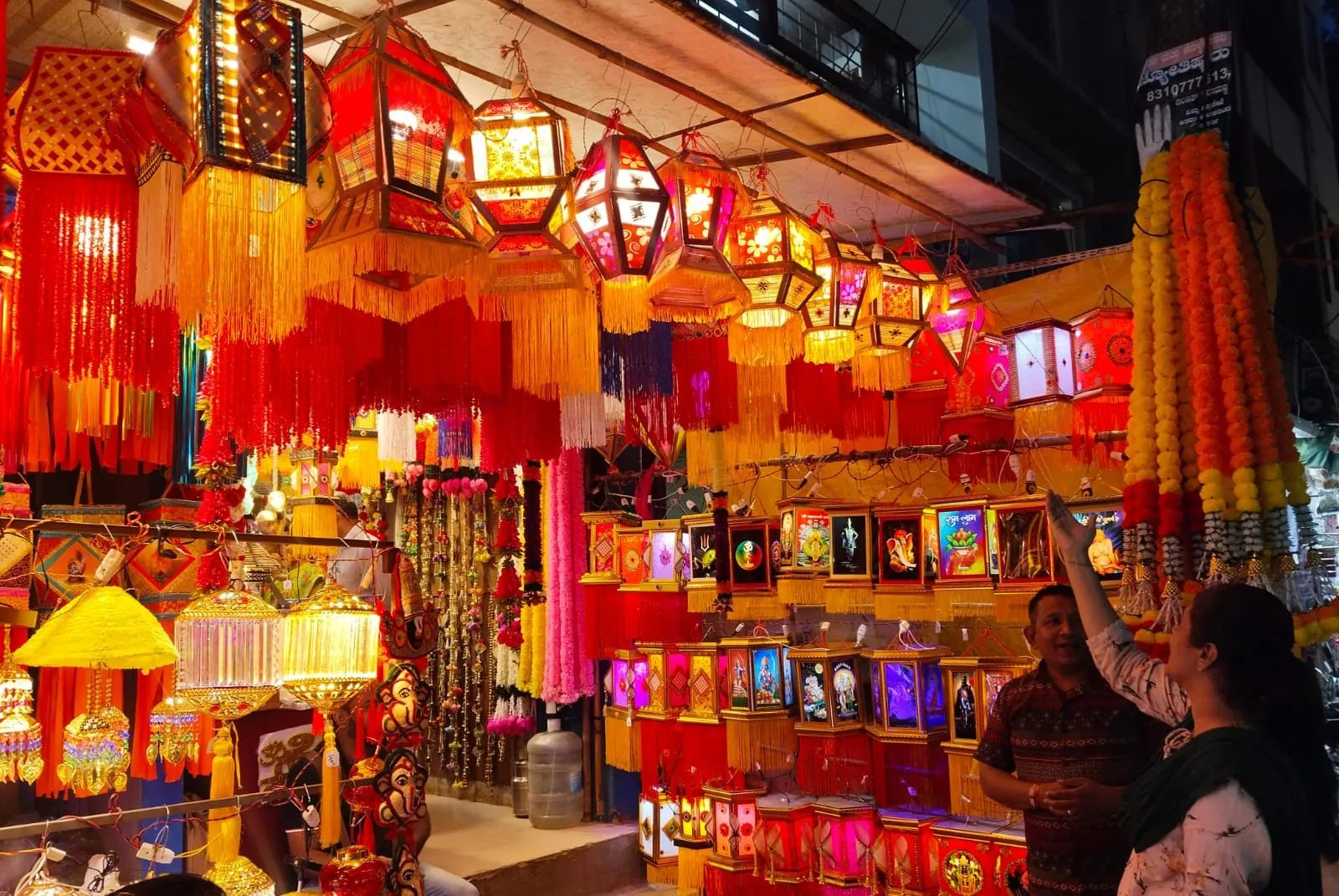 विक्रेत्यांनी दुकानांसमोर टांगले रंगीबेरंगी आकाशकंदील : आकाशदीपांची पूजा करण्याची पद्धत प्राचीन काळापासूनची