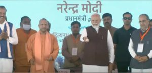 पंतप्रधान नरेंद्र मोदी यांच्या उत्तर प्रदेश दौऱ्याचा रविवारी दुसरा दिवस होता. याप्र्रसंगी आझमगड येथून पंतप्रधान मोदींनी देशभरातील 15 विमानतळांचे उद्घाटन केले. पंतप्रधान मोदींनी सुरू केलेल्या प्रकल्पात पुणे, कोल्हापूर, ग्वाल्हेर, जबलपूर, दिल्ली, लखनौ, अलिगढ, आझमगड, चित्रकूट, मुरादाबाद, श्रावस्ती आणि आदमपूर विमानतळावरील 12 नवीन टर्मिनल इमारतींचा समावेश आहे. तसेच कडप्पा, हुबळी आणि बेळगाव विमानतळाच्या नवीन टर्मिनल इमारतींची पायाभरणी करण्यात आली. यावेळी उत्तर प्रदेशचे मुख्यमंत्री योगी आदित्यनाथ आणि इतर मान्यवर उपस्थित होते.