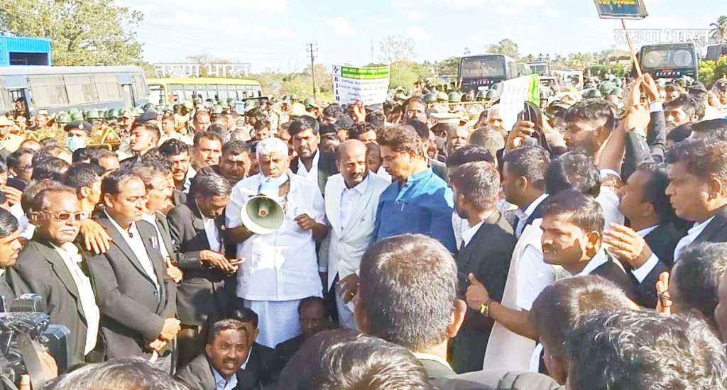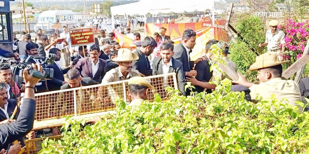 वकील सुरक्षा कायदा करण्यात यावा, या मागणीकरिता यापूर्वी न्यायालयीन कामकाज बंद ठेवून आंदोलन छेडण्यात आले होते. या मागणीची पूर्तता करावी, याकरिता मंगळवारी राणी चन्नम्मा चौकातून सुवर्णसौधवर मोर्चा काढण्यात आला. सुवर्णसौध येथे धरणे आंदोलनासाठी जाणारा मोर्चा हलगा क्रॉसजवळ पोलिसांनी रोखून धरला. बॅरिकेड्स लावून वकिलांना पुढे जावू दिले नाही. पोलिसांनी राष्ट्रीय महामार्गावर कडे तयार केले. तरीदेखील काही वकिलांनी पोलिसांचे कडे तोडून सुवर्णसौधकडे कूच केली. यावेळी काही वकिलांनी शेतवडीतून धाव घेऊन सुवर्णसौध गाठले. मात्र त्या ठिकाणीदेखील तैनात केलेल्या पोलिसांनी वकिलांना रोखून धरले. या दरम्यान बॅरिकेड्सला धक्का देऊन पुढे जाण्याचा प्रयत्न वकिलांनी केला. पण पोलीस तसेच रॅपिड अॅक्शन फोर्सच्या जवानांनी वकिलांना पुढे जावू दिले नाही. यावेळी लावण्यात आलेले बॅरिकेड्स ओढून काढण्याचा प्रयत्न आंदोलकांनी केला. यादरम्यान पोलीस व आंदोलक वकिलांमध्ये झटापटी झाली. दुपारी अडीच वाजता राष्ट्रीय महामार्गावर हे आंदोलन सुरू झाले होते. यावेळी राष्ट्रीय महामार्गावरील वाहतूक एका बाजूने वळविण्यात आली. पण रस्त्यावर वाहनांच्या रांगा लागल्याने वाहतूक कोंडी झाली होती. पोलीस आणि आंदोलकांमधील झटापट तब्बल 1 तास सुरू होती. पोलिसांची वाहने आणि कुमक चारही बाजूने तैनात केली. पण अडकलेल्या वाहनांना जाण्यासाठी मार्ग करण्यात आला नाही. परिणामी हलगा क्रॉसपासून बेळगावपर्यंत वाहनांच्या रांगा लागल्या होत्या.