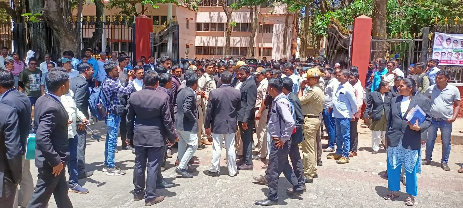 बेळगाव ; सीईएन पोलीस कार्यालयासमोर कार पार्किंग करताना पोलिसांनी वकिलाला दमदाटी केल्यामुळे पुन्हा वकिलांनी तीव्र आंदोलन केले. न्यायालयासमोरील मुख्य रस्त्यावर काहीवेळ रास्तारोको करून त्याचा निषेध नोंदविण्यात आला. यामुळे या रस्त्यावरील वाहतूक खोळंबली होती. काही कामानिमित्त मार्केट पोलीस स्थानकाच्या मागील बाजूला असलेले सीईएन पोलीस स्थानकाजवळ वकील कार पार्किंग करीत होते. यावेळी पोलिसांनी येथे कार पार्किंग करू नका, म्हणून त्यांच्याशी वादावादी केली. यामुळे संतप्त झालेल्या काही वकिलांनी मंगळवारी दुपारी रास्तारोको करण्याचा निर्णय घेतला. त्यामुळे काहीवेळ गोंधळ उडाला होता. पोलिसांनी समजूत काढण्याचा प्रयत्न केला. मात्र वकिलांनी आंदोलन सुरूच ठेवले. त्यानंतर ज्येष्ठ वकिलांनी चर्चा करून हे आंदोलन मागे घेतले. आंदोलनामध्ये वकिलांनी मोठ्या संख्येने भाग घेतला होता.