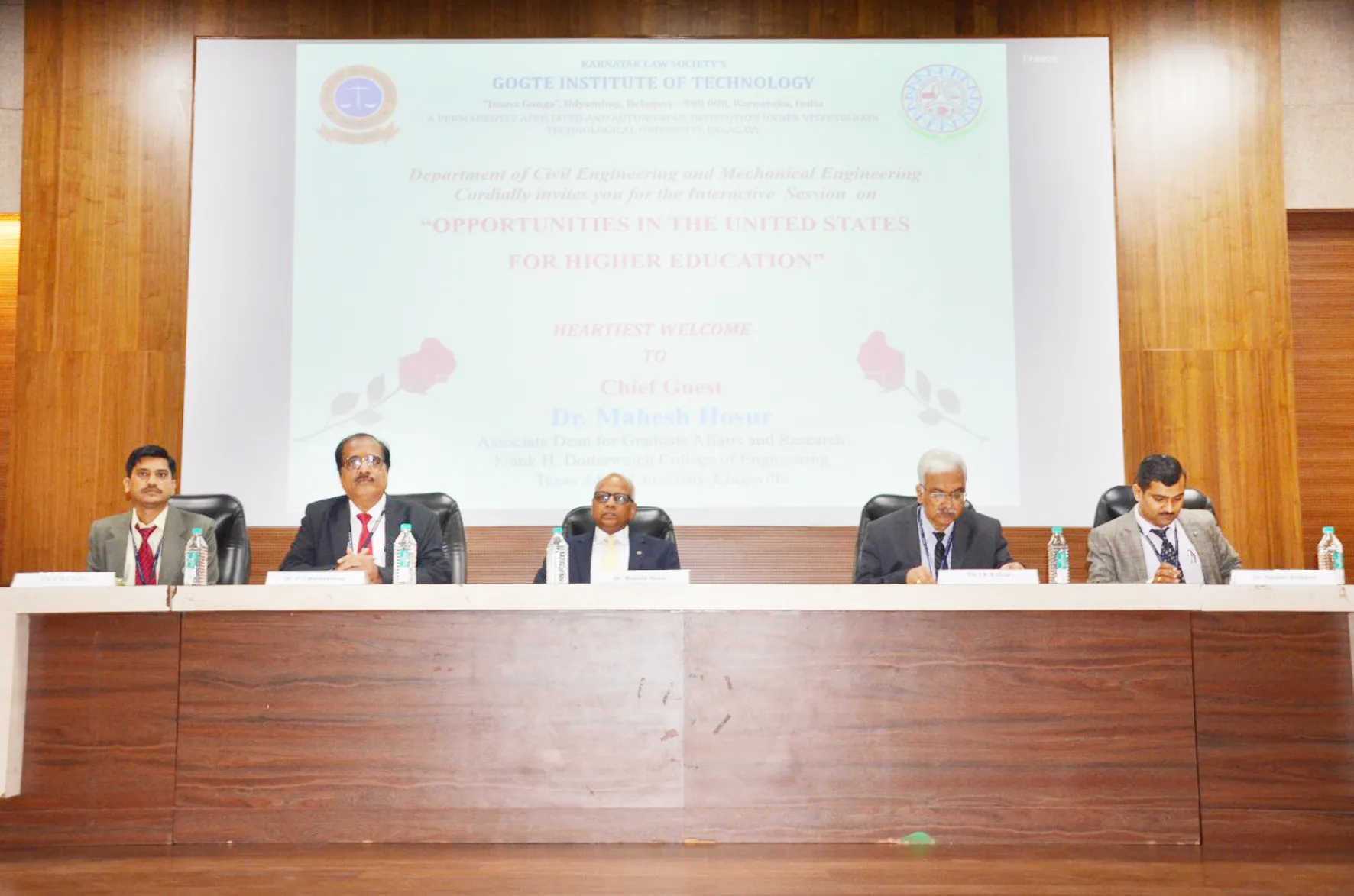 जीआयटीच्या सिव्हिल व मेकॅनिकल इंजिनिअरिंग विभागातर्फे ग्रॅज्युएट अफेयर्स ऍण्ड रिसर्च, टेक्सासचे डीन डॉ. महेश होसूर यांच्या व्याख्यानाचे आयोजन करण्यात आले होते. त्यांनी टेक्सास विद्यापीठातील संधींची माहिती देऊन आंतर विद्याशाखीय क्षेत्रात किती वाव आहे, याची माहिती दिली.