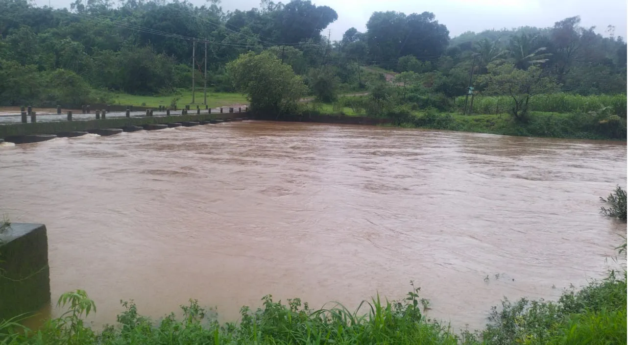 उत्तर कर्नाटकातील सर्वाधिक पावसाचे ठिकाण म्हणून ओळखल्या जाणाऱ्या खानापूर तालुक्यातील कणकुंबी भागात पावसाची संततधार सुरूच असून येथील जनजीवन विस्कळीत झाले आहे. तसेच गेल्या आठ दिवसांपासून कणकुंबी परिसरातील संपूर्ण गावे अंधारात असून प्रशासन गाढ झोपी गेले आहे, असेच म्हणावे लागेल. कणकुंबी येथील पर्जन्यमापक केंद्रात मंगळवारपर्यंत 3089.8 मि.मी. पावसाची नोंद झाली आहे. गेल्या दोन दिवसांपासून पावसाने पुन्हा जोर धरलेला असून कणकुंबी भागातील मलप्रभा नदीसह लहान-मोठे सर्व नाले तुडुंब भरून वाहत आहेत. जून महिन्यात केवळ 814.2 मि. मी. पाऊस झाला होता. तर जुलै महिन्यात दि. 23 जुलैपर्यंत 2275.6 मि.मी. पाऊस झाला आहे. जून आणि जुलै महिन्यात 3089.8 मि. मी. पाऊस झाला आहे. गेल्या दोन दिवसांपासून कणकुंबी आणि परिसरात झालेल्या वादळी वाऱ्यासह पावसाने अनेक घरांची पडझड झालेली असून काहींच्या घरांचे पत्रे उडून गेले आहेत. तसेच संततधार पावसामुळे सर्व धबधबे प्रवाहित झालेले असून वनखात्याने बंदी घातल्याने पर्यटकांचा हिरमोड झाला आहे. पावसामुळे मलप्रभा नदीच्या पाणीपातळीत वाढ झाली असून पुढील दोन-तीन दिवस पाऊस वाढण्याची शक्यता हवामान खात्याने वर्तविली आहे. एकंदरीत मुसळधार पावसामुळे हवेमध्ये गारठा निर्माण झाल्याने जनजीवन ठप्प झाले आहे.