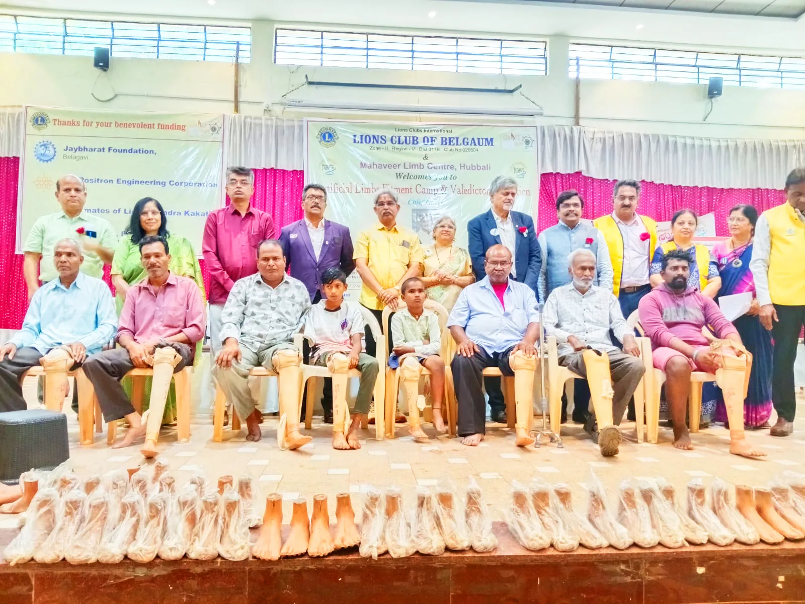 बेळगाव : लायन्स क्लब ऑफ बेळगाव आणि महावीर लिंब सेंटर हुबळी यांच्या संयुक्त विद्यमाने दि. 26 रोजी 120 लाभार्थ्यांना कृत्रिम पाय बसविण्यात आले. इन्स्टिट्यूट ऑफ इंजिनियर्स हॉलमध्ये हा कार्यक्रम झाला. उपक्रमाच्या प्रारंभी इव्हेंट चेअरमन ला. रवींद्र काकती यांनी स्वागत केले. क्लबचे अध्यक्ष ला. दया शहापूरकर यांनी क्लबच्या उपक्रमांचा हेतू सांगितला. महावीर लिंब सेंटरतर्फे ला. रवींद्र क्रांती यांचा त्यांनी घेतलेल्या परिश्रमाबद्दल सत्कार करण्यात आला. प्रमुख पाहुणे म्हणून प्रांतपाल मनोज माने उपस्थित होते. या उपक्रमाला जय भारत फाउंडेशनचे सहकार्य लाभले. याप्रसंगी निमंत्रित पाहुणे म्हणून अशोक आयर्न वर्क्सचे जनरल मॅनेजर विनायक भोसले यांनी वंचितांच्या विकासासाठी खासगी क्षेत्राची भूमिका यावर मार्गदर्शन केले. त्याचप्रमाणे प्रांतपाल मनोज माणिक यांनी मार्गदर्शन केले व लायन्स क्लबच्या उपक्रमाची प्रशंसा केली. यावेळी अशोक आयर्नचे संचालक दयानंद कदम उपस्थित होते. लायन्स क्लब ऑफ बेळगावतर्फे या सर्वांचा सत्कार करण्यात आला. कृत्रिम पाय बसविण्याच्या या प्रकल्पाला 3.2 लाख रुपये खर्च आला आहे. सचिव गीता कित्तूर यांनी आभार मानले. याप्रसंगी लायन्सचे पदाधिकारी उपस्थित होते.
