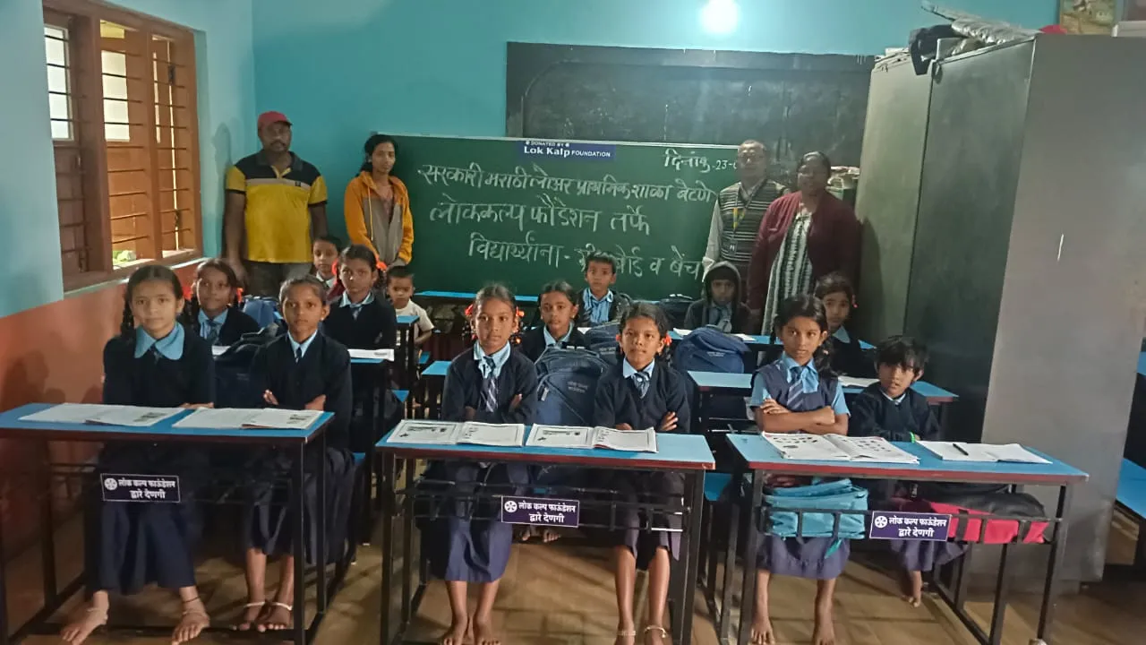 बेळगाव : लोककल्प फौंडेशनतर्फे खानापूर तालुक्यातील बेटणे गावातील एमएचपीएस शाळेला ग्रीन बोर्ड व बसण्यासाठी बाक भेटीदाखल देण्यात आले. लोकमान्य सोसायटीच्या सीएसआर उपक्रमातून हे साहित्य देण्यात आले. या उपक्रमासाठी सोसायटीचे चेअरमन डॉ. किरण ठाकुर यांचे मार्गदर्शन लाभत आहे. फौंडेशनने खानापूर तालुक्यातील 32 गावे दत्तक घेतली असून त्याअंतर्गत या गावांमधून अनेक सुविधा देण्यात येत आहेत.