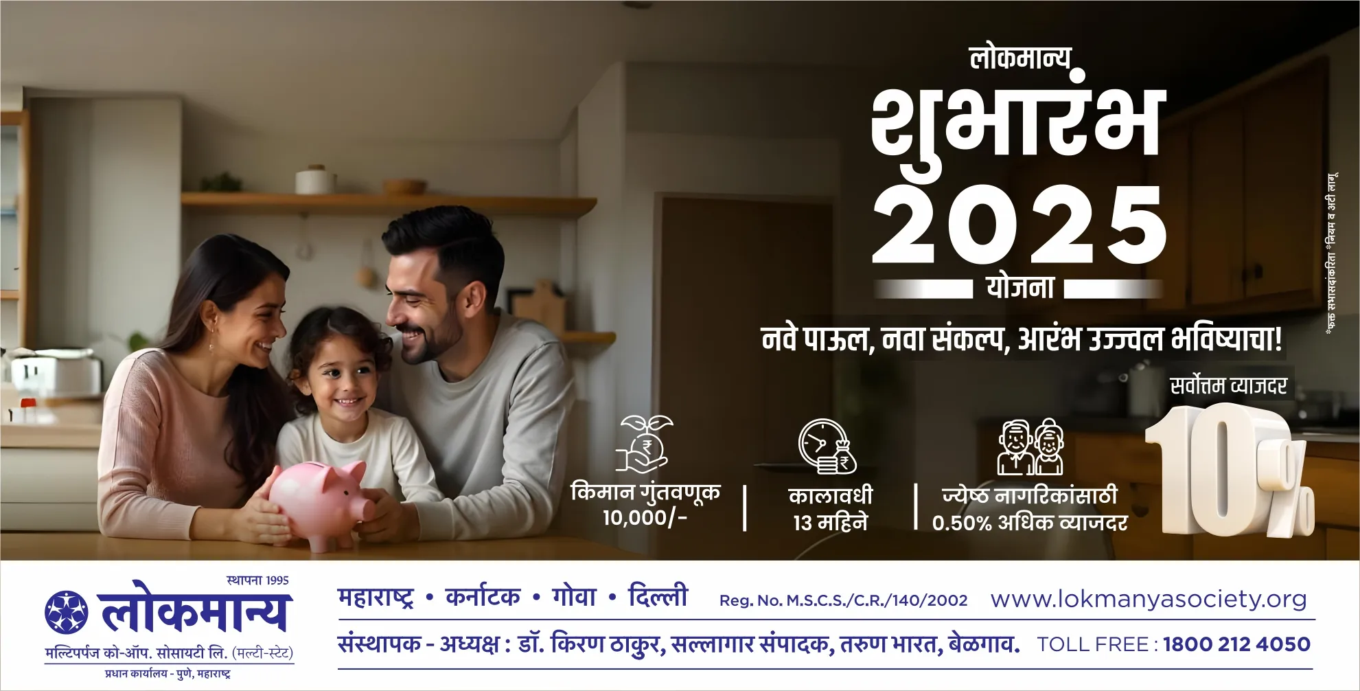 नवीन वर्षाची सुरुवात होत असताना, लोकमान्य मल्टिपर्पज को-ऑपरेटिव्ह सोसायटी लिमिटेडने लोकमान्य शुभारंभ २०२५ हि ठेव योजना सादर केली आहे. या ठेव योजनेत किमान गुंतवणूक रु.१०००० असून १३ महिन्याच्या कालावधीसह १०% वार्षिक व्याजदर तसेच वयोवृद्ध नागरिकांसाठी ०.५०% अतिरिक्त व्याजदर देण्यात येणार आहे.लोकमान्य शुभारंभ २०२५ योजना आर्थिक वृद्धीसाठी एक उत्तम पर्याय आहे. योजनेची खास वैशिठ्य म्हणजे ती सुरक्षित आणि उच्च परतावा देणारी आहे, ज्यामुळे गुंतवणूकदारांना स्थिर आणि खात्रीशीर आर्थिक लाभ मिळू शकते . तसेच ती दीर्घकालिन आणि लहान-मोठ्या सर्व प्रकारच्या आर्थिक उद्दिष्टांसाठी उपयुक्त ठरते.