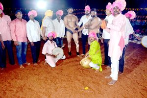 बेळगाव : संतीबस्तवाड येथे बसवेश्वर व दुर्गादेवी यात्रोत्सवानिमित्त भव्य कुस्ती मैदानात कर्नाटक केसरी संगमेश्वर बिराजदारला पायाला दुखापत झाल्याने महाराष्ट्र चॅम्पियन बाळू अपराधला विजयी घोषित करण्यात आले. बेळगावच्या पार्थ पाटीलने इंद्रजित शेळकेला एकलांगीवरती पराभव करुन उपस्थित कुस्ती शौकिनांकडून वाहवा मिळविली. प्रमुख कुस्ती कर्नाटक केसरी संगमेश बिराजदार व महाराष्ट्र चॅम्पियन बाळू अपराध ही कुस्ती राहुल कल्लूर, अश्फाक ताशिलदार, बसाप्पा बिरमुत्ती, सातेरी कोकितकर, अॅड. प्रसाद सडेकर, भरमा बिरमुत्ती, यांच्या हस्ते लावण्यात आली. या कुस्तीत दुसऱ्या मिनिटाला बाळू अपराधने एकेरीपट काडून संगमेशला खाली घेतले. संकमेशला खाली घेवून घुटण्यावरती फिरविण्याचा प्रयत्न केला. पण संगमेशने त्यातून सुटका करुन घेतली. चौथ्या मिनिटाला संगमेशने एकेरीपट काढत बाळूला खाली घेत घिस्स्यावरती फिरविण्याचा प्रयत्न केला. पण बाळूने त्यातून सुटका करुन घेतली. 18 व्या मिनिटाला बाळूने दुहेरीपट काडून संकमेशवर ताबा मिळवित सवारी घालण्याचा प्रयत्न केला. पण त्यावेळी संगमेशच्या पायाला गंभीर दुखापत झाल्याने बाळू अपराधला विजयी घोषीत करण्यात आले.