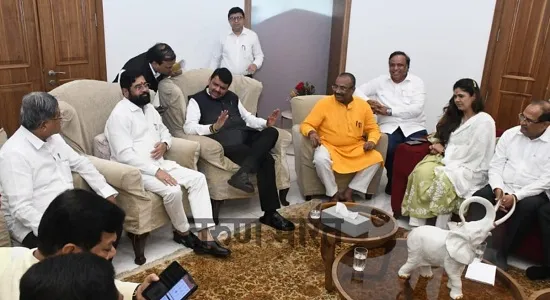 सागर बंगल्यावरी एकनाथ शिंदे आणि देवेंद्र फडणवीस यांची बैठक संपली आहे. १५ मिनिटे शिंदे आणि फडणवीसांमध्ये चर्चा झाली. चर्चेनंतर शिंदे, फडणवीस, चंद्रकांत पाटील आणि भाजपचे अन्य नेते हे राज्यपालाची भेट घेण्यासाठी राजभवनाकडे रवाना झाले आहेत. विशेष म्हणजे शिंदे, फडणवीस आणि पाटील हे एकाच गाडीतून राज्यपालांना भेटण्यासाठी जात आहेत.