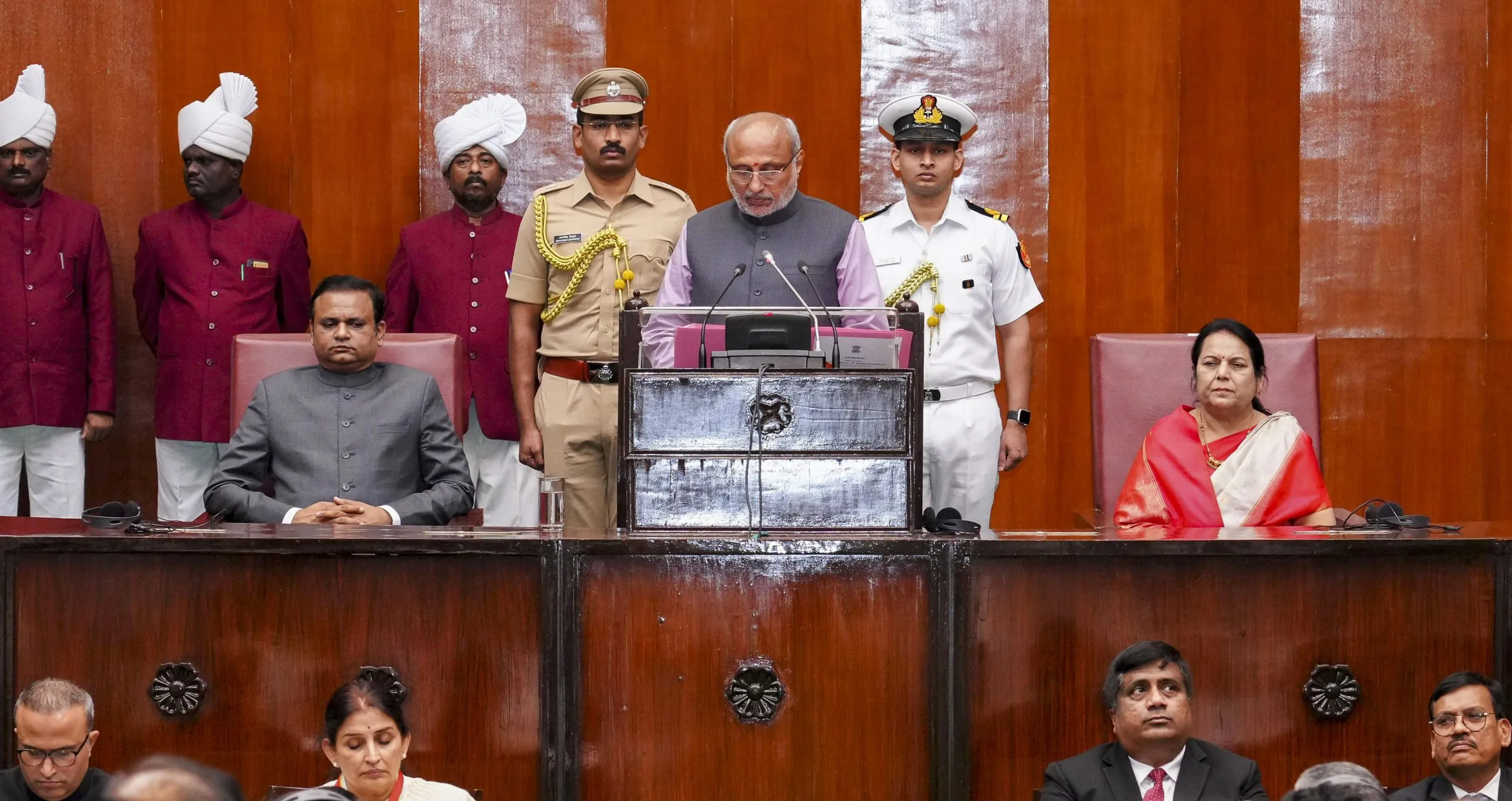 नुकत्याच झालेल्या विधानसभा निवडणुकीनंतरच्या राज्य विधानमंडळाच्या पहिल्या अधिवेशनामध्ये राज्यपाल राधाकृष्णन यांनी संयुक्त सभागृहात सदस्यांना संबोधित केले. यावेळी विधानसभा अध्यक्ष अॅड. राहुल नार्वेकर, विधान परिषदेच्या उपसभापती डॉ. नीलम गोऱ्हे, मुख्यमंत्री देवेंद्र फडणवीस, उपमुख्यमंत्री एकनाथ शिंदे, उपमुख्यमंत्री अजित पवार, विधीमंडळाचे सदस्य, मुख्य सचिव सुजाता सौनिक, विधीमंडळ सचिवालायाचे सचिव जितेंद्र भोळे आदी उपस्थित होते.