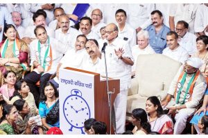 महाराष्ट्रात काही लोकांनी बाजूला जायची भूमिका घेतली. माझी तक्रार नाही पण दु:ख आहे. कारण लोकांनी त्यांना निवडून दिले आहे. कार्यकर्त्यांनी अपार मेहनत केली होती. जो राजकीय विचार आपल्याला मान्य नाही त्याच विचारांच्या पंक्तीला जाऊन बसणे योग्य नाही. एवढेच मला सांगायचे आहे. काही लोक पक्षाची प्रॉपर्टी ताब्यात घेतात. पक्ष आमचा आहे, घड्याळ आमचे आहे असा दावा करतात. पण चिन्ह कुठेही जाणार नाही आणि जाऊ देणार नाही. जोपर्यंत आपल्या पक्षाचा विचार सामान्य माणसाच्या अंत:करणात आहे, तोपर्यंत काहीही चिंता करण्याचे काहीही कारण नाही, असेही शरद पवार यांनी स्पष्ट सांगितले.
