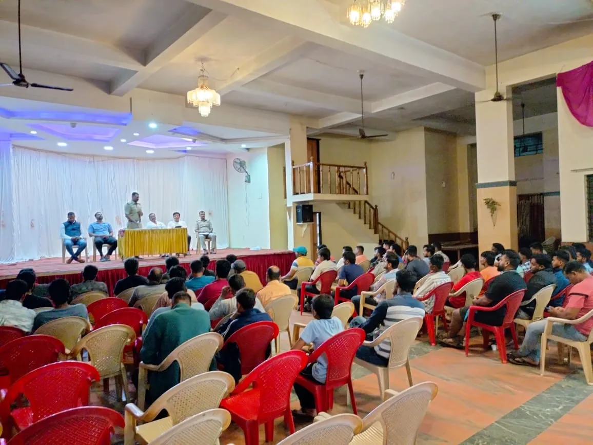 उद्यमबाग पोलीस स्टेशनतर्फे शनिवार दि. 17 रोजी सुख-शांती कार्यालय, खानापूर रोड, ब्रह्मनगर येथे बैठकीचे आयोजन करण्यात आले होते. अध्यक्षस्थानी सीपीआय पाटील होते. यावेळी मजगाव व उपनगरातील सर्व गणेशोत्सव मंडळांचे कार्यकर्ते मोठ्या संख्येने उपस्थित होते. मजगावचे प्रमुख पंच, पीएसआय व इतर अधिकारी उपस्थित होते.यावेळी विसर्जन व्यवस्था कळीचा मुद्दा ठरला. मजगाव देवस्थान पंच कमिटीचे प्रमुख पंच शिवाजी पट्टण यांनी श्री ब्रह्मदेव मंदिरासमोरील तलावात गणेश विसर्जनास कडाडून विरोध केला.
