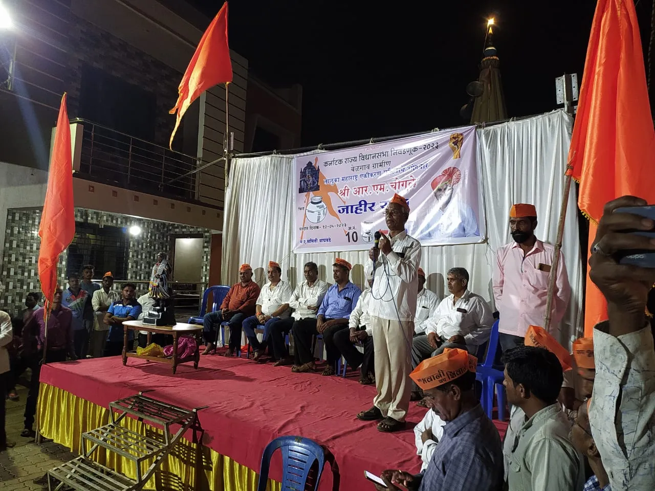 तालुक्यातील शेतकऱ्यांच्या सुपीक जमिनी रिंगरोडसाठी हिसकावून घेण्याचा घाट सरकारने घातला आहे. या रिंगरोडच्या विरोधात महाराष्ट्र एकीकरण समितीच्या माध्यमातून जिल्हाधिकारी कार्यालयावर चाबुक मोर्चा काढण्यात आला. तसेच झाडशहापूर, बेळगुंदी येथे आंदोलने झाली. शेतकऱ्यांच्या सुपीक जमिनी वाचविण्यासाठी राष्ट्रीय पक्षांकडून कोणीही आवाज उठवित नाहीत. मात्र महाराष्ट्र एकीकरण समिती नेहमीच शेतकऱ्यांच्या पाठीशी ठाम उभी असते. शेतकऱ्यांच्या समस्या सोडविण्यासाठी, त्यांच्या हितासाठी महाराष्ट्र एकीकरण समितीचे उमेदवार आर. एम. चौगुले यांना निवडून आणा, असे आवाहन एपीएमसी माजी सदस्य आर. के. पाटील यांनी वाघवडे येथे केले. महाराष्ट्र एकीकरण समितीचे अधिकृत उमेदवार आर. एम. चौगुले यांची रविवारी सायंकाळी वाघवडे गावात प्रचारसभा झाली. यावेळी आर. के. पाटील यांनी गावकऱ्यांना मार्गदर्शन करून समितीच्या उमेदवाराला निवडून आणा, असे सांगितले. य् ाा सभेवेळी व्यासपीठावर आर. आय. पाटील, सरस्वती पाटील, दिनेश ओऊळकर, प्रकाश मरगाळे, सचिन गोरले, पिराजी शिंदे, मधुरा गुरव, प्रेमा मोरे, मोनाप्पा पाटील, कलाप्पा गुरव, नाग्रेंद्र पाटील, मल्लाप्पा पाटील आदी उपस्थित