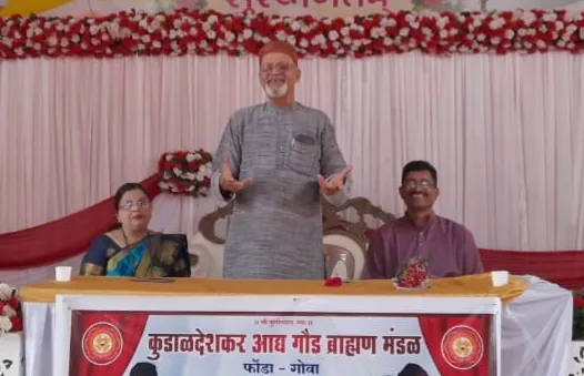 फोंडा येथील बाबय प्रभू स्मृती भवनच्या सभागृहात ज्ञातीबांधवांसाठी आयोजित केलेल्या सूत्रसंचालन कार्यशाळेत दुर्गाकुमार नावती व दया तेंडुलकर व्यासपीठावर हजर होते. कार्यशाळेचे उद्घाटन मंडळाचे कार्याध्यक्ष पांडुरंग पाटील, अध्यक्ष विश्वनाथ प्रभू तसेच उपाध्यक्ष व माजी मंत्री दीपक पाऊसकर यांच्याहस्ते करण्यात आले.