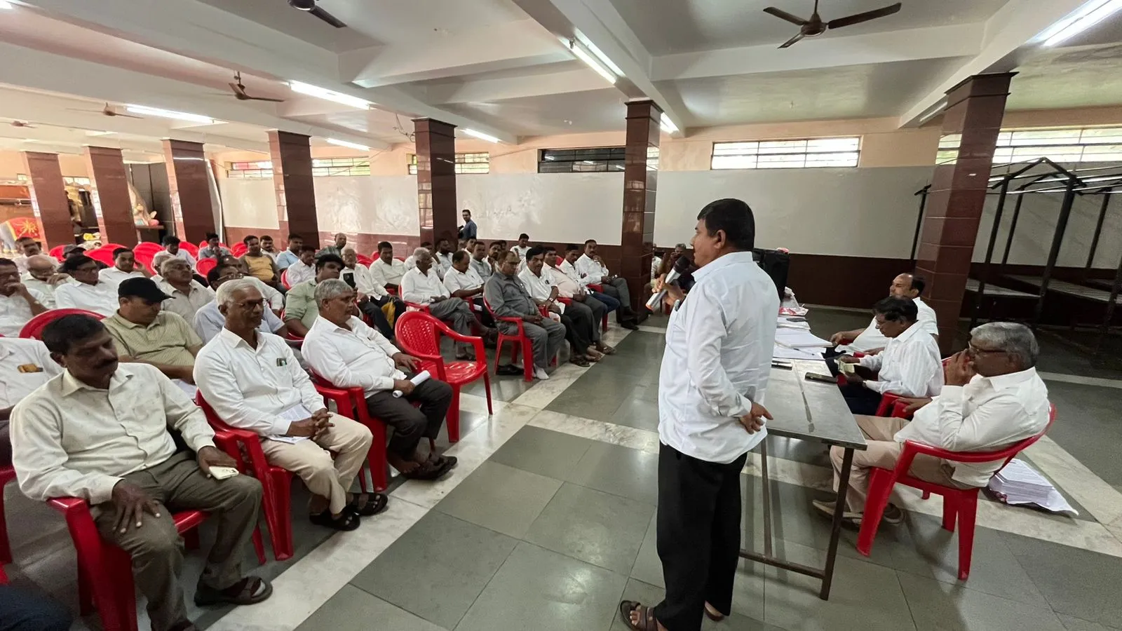 बैठकीच्या अध्यक्षस्थानी कार्याध्यक्ष मनोहर किणेकर होते. व्यासपीठावर सचिव अॅड. एम. जी. पाटील, युवा नेते आर. एम. चौगुले उपस्थित होते. या बैठकीमध्ये तालुक्यातील कार्यकर्त्यांनी आपले मनोगत व्यक्त करत महामोर्चा यशस्वी करण्यासंदर्भात मते मांडली. कर्नाटक सरकारकडून नवनवीन फतवे काढून मराठी संपविण्याचा प्रयत्न सुरू आहे. यापूर्वी कार्यालयातील मराठी फलक हटविण्यात आले. त्यानंतर दुकानांवरील पाट्या व आता गणेशोत्सवाच्या फलकांवरही कन्नड सक्ती करण्यासाठी प्रयत्न सुरू आहेत. आता ही कन्नड सक्ती प्रत्येकाच्या दारासमोर येऊन ठेपल्याने वेळीच आवाज उठविणे गरजेचे आहे. अन्यथा घरातही मराठी बोलण्यावर यापुढे निर्बंध येतील, अशा प्रतिक्रिया व्यक्त करण्यात आल्या.