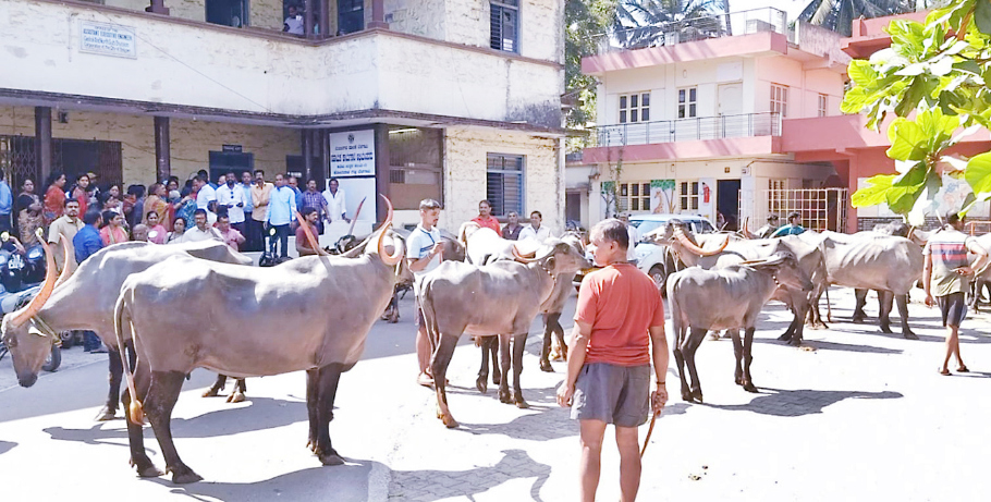 सुरळीत पाणीपुरवठ्याच्या मागणीसह समस्यांच्या निवारणासाठी कोनवाळ गल्ली परिसरातील रहिवाशांनी सोमवारी जनावरांसह कोनवाळ गल्लीतील महापालिकेच्या विभागीय कार्यालयावर मोर्चा काढला. तसेच यावेळी महापालिकेच्या साहाय्यक कार्यकारी अधिकाऱ्यांना निवेदन देऊन धारेवर धरले. पाणी समस्या निवारणासाठी सिमेंट काँक्रीटच्या रस्त्याची खोदाई करून जलवाहिन्या घालण्याचे काम करण्यात आले होते. जलवाहिन्या घालून दोन महिने उलटले, पण अद्यापही नळजोडण्या दिल्या नाहीत. नळ जोडण्या कधी देणार व पाणीपुरवठा कधी करणार? असा मुद्दा उपस्थित केला. रस्त्याची खोदाई केल्याने वाहने व रहिवाशांना ये-जा करणे मुश्कील बनले आहे. तसेच सर्व्हिस रस्त्यावरील डेनेज काम अर्धवट असून रस्त्यावरून नागरिकांना अडचणीचे बनले आहे. त्यामुळे रस्त्याचे काम कधी पूर्ण करणार? अशा विविध प्रश्नांची सरबत्ती केली. येत्या आठ दिवसांत समस्यांचे निवारण करा, अन्यथा रास्तारोको करू, असा इशारा देण्यात आला.