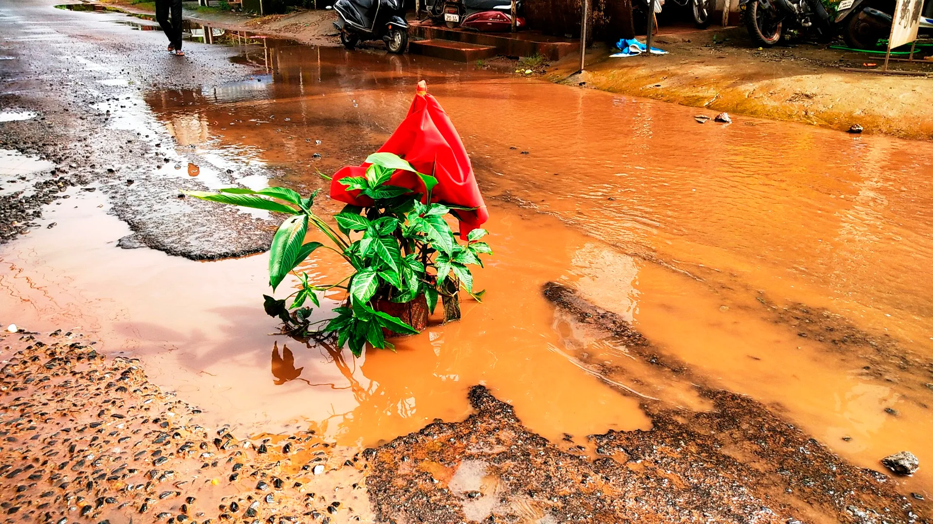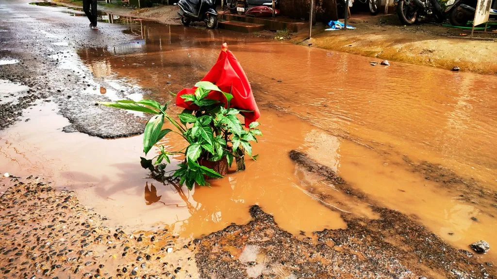 मे महिन्यात या रस्त्यावर हा खड्डा तयार झाला. पंधरा दिवसांपूर्वी या खड्डय़ाबाबत प्रसार माध्यमातून प्रसिद्ध झाल्यानंतर स्थानिक नागरिक तथा माजी उपसरपंच अमित शेटगावकर यांनी स्वतः पुढाकार घेऊन हा खड्डा बुजवण्याचा प्रयत्न केला होता. परंतु धो धो पडत असलेल्या पावसामुळे हा खड्डा पुन्हा एकदा जीवघेणा ठरत आहे. या खड्डय़ाच्या बाजूलाच एक हॉटेल आहे आणि त्या ठिकाणी दिल्लीतील काही पर्यटक वास्तव्य करून असतात. त्यांची या रस्त्याच्या बाजूला ठेवून वाहतुकीस अडथळा निर्माण करत आहेत. खड्डे वाचवताना वाहनांचे अनेकवेळा अपघात घडतात.