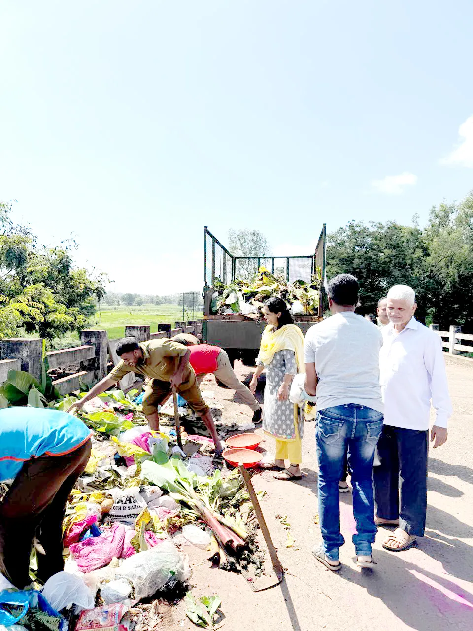 हिंडलगा : हिंडलगा ग्रामपंचायततर्फे यावर्षी अनंत चतुर्दशीला नदीकाठावर ट्रॅक्टर ट्रॉलीची व्यवस्था करून स्वच्छतेविषयी जागृतीफलक लावण्यात आला होता. तसेच सर्व गणेशभक्तांना स्वच्छतेविषयी आवाहन केले होते. निर्माल्य, प्लास्टिक व इतर साहित्य इतरत्र न टाकता ट्रॉलीमध्ये टाका व परिसर स्वच्छ ठेवा, अशाप्रकारचे आवाहन गणेशभक्तांना केले होते. तरीदेखील या ठिकाणच्या गर्दीत कांही गणेशभक्तांनी निर्माल्य, प्लास्टिक व इतर साहित्य परिसरात फेकून दिले होते. त्यामुळे येथील परिसर अस्वच्छ झाला होता. याची दखल ग्रामपंचायत अध्यक्षा चेतना अगसगेकर, सदस्य रामचंद्र कुद्रेमणीकर, प्रवीण पाटील, यल्लाप्पा गुंडू काकतकर, गजानन बांदेकर, उमा सोनवडेकर यांनी घेऊन लागलीच तो परिसर स्वच्छ करण्यासाठी परिश्रम घेतले. या परिसरातील सर्व प्लास्टिक, निर्माल्य व इतर सर्व टाकलेल्या वस्तू एकत्र करून याची उचल केली व भाविकांना हा परिसर स्वच्छ करून दिला. त्यामुळे नागरिकांतून समाधान व्यक्त होत आहे. ग्रामपंचायततर्फे समस्त नागरिकांना आवाहन करण्यात आले आहे की नदीचे पाणी प्रदूषित होऊ नये, याची समस्त भाविकांनी व नागरिकांनी दखल घ्यावी. पाण्यात टाकाऊ वस्तु, पूजा साहित्य, प्लास्टिक अशा वस्तू टाकू नयेत, असे आवाहन केले आहे.