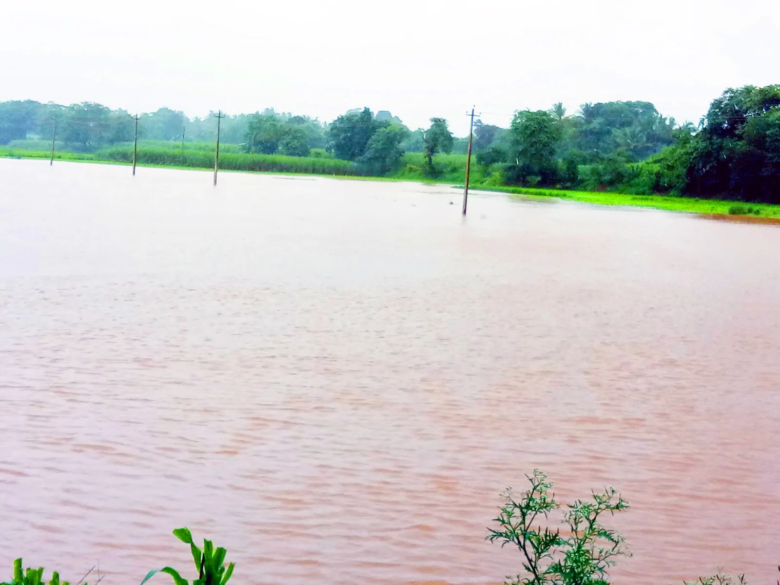 परिणामी नदीच्या पात्रात पाण्याची पातळी वाढत गेल्याने या भागातील शेतवडीत आता पाणी शिरले आहे. नदीच्या दुतर्फा हजारो एकर जमिनीमध्ये शेतकऱ्यांनी भाताच्या रोप लागवडीसाठी म्हणून जवळपास तीन ते चारवेळा भाताची पेरणी केली होती. मात्र चालवर्षी मे महिन्यापासूनच पावसाने जोर केल्याने आणि जून, जुलैमध्ये अतिवृष्टी झाल्याने पेरणी केलेली पूर्ण बियाणे कुजून खराब झाली होती. यानंतर पुन्हा भाताची रोपे लागवड करून आता ती चांगल्या स्थितीत असताना पुन्हा एकदा पावसाने जोर केला आहे. याबरोबरच ऊस व इतर काही मिरची, भाजीपाला देखील या नदीकाठाला असून पाण्याच्या जोरदार प्रवाहामुळे ही सर्व पिके पाण्याखाली गेली आहेत. जर पाणी असेच राहिले तर पिके कुजून नुकसान होण्याची भीतीही शेतकरी व्यक्त करताना दिसत आहेत. नदीकाठचा सर्व भाग आता जलमय झाल्याचे सर्वत्र दिसून येत आहे. नदीच्या पात्रातील पाण्याने आता जोर घेतला आहे. रात्री व दिवसा उसंत न घेता संततधार पावसाच्या धारा कोसळत आहेत.