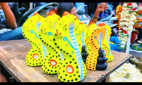 नागपंचमीला नागमूर्ती पुजण्याची प्रथा आहे. त्यामुळे गणपत गल्लीत विक्रीसाठी दाखल झालेल्या रंगीबेरंगी मूर्तींना मागणी वाढली होती. 20 रुपयांपासून 80 रुपयांपर्यंत किमती होत्या. आजही शहरासह ग्रामीण भागात पोहय़ाचे लाडू बनविण्याची पद्धत रूढ आहे. त्यामुळे पोहे, शेंगा, गूळ यांना पसंती अधिक होती. नागपंचमीसाठी लागणाऱया फराळय़ाच्या साहित्य खरेदीसाठी गर्दी झाली होती. चिवडय़ाचे पोहे 60 ते 65 रुपये किलो, भाजलेल्या शेंगा 140 रुपये किलो, लाहय़ा 10 रुपये लिटर, चिरमुरे 60 रुपये किलो, फुटाणे 80 ते 100 रुपये किलो, चक्की गूळ 50 रुपये किलो, गूळ 45 रुपये असा दर आहे.